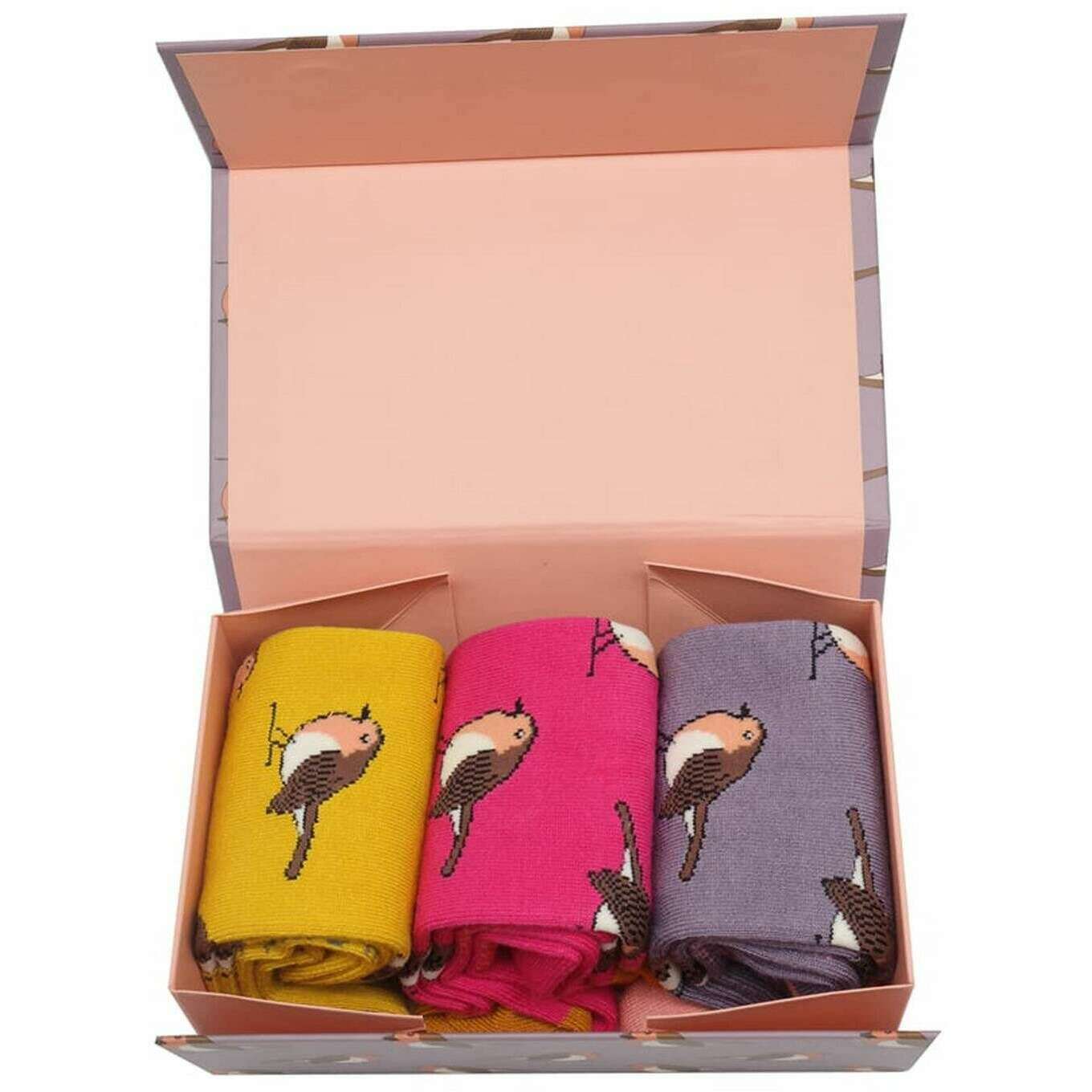 Miss Sparrow London ロビンズ ソックス ボックス 3 パック - ピンク/イエロー/パープル