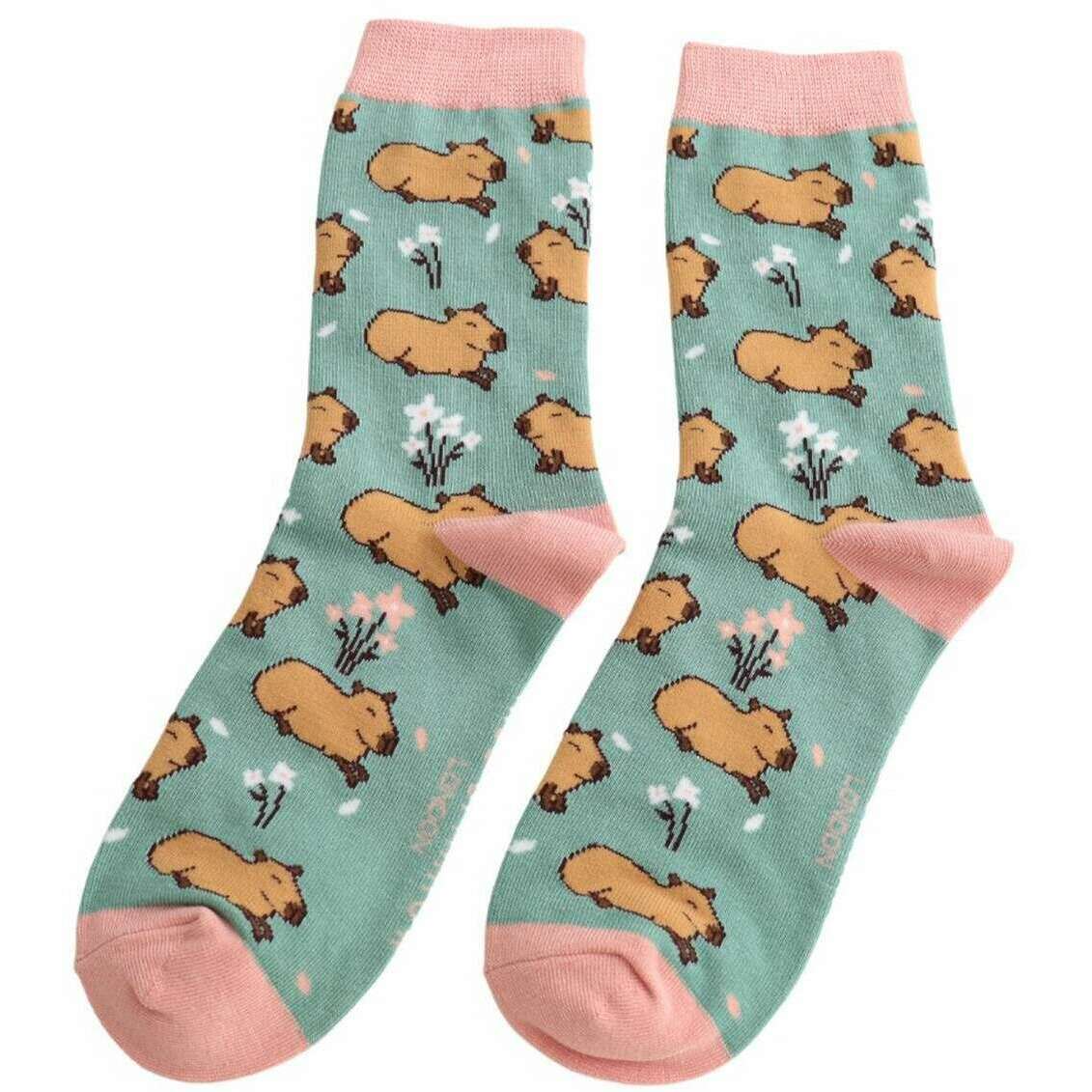 Miss Sparrow London かわいいカピバラの竹ソックス - グリーン