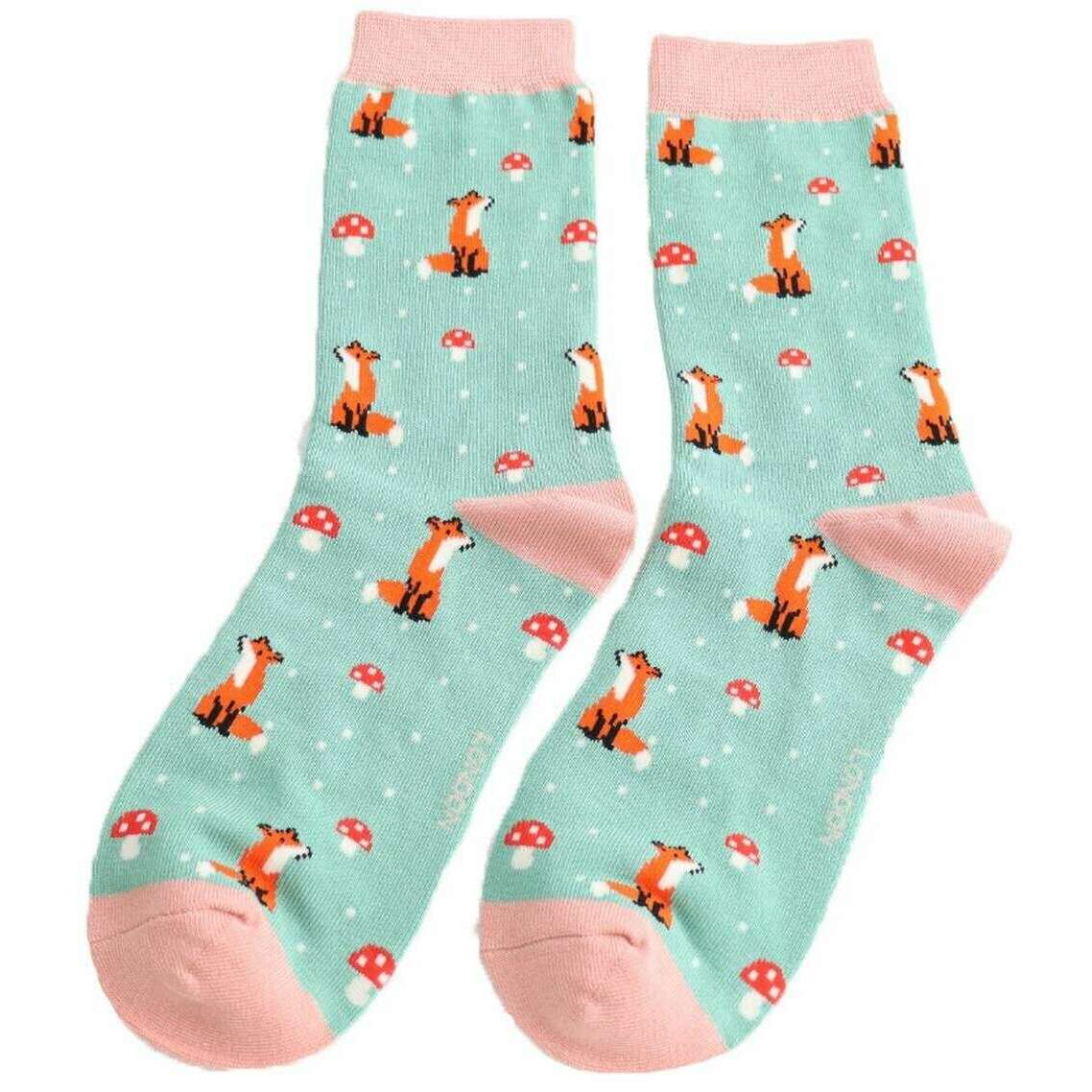 Miss Sparrow London キツネとキノコの竹ソックス - グリーン