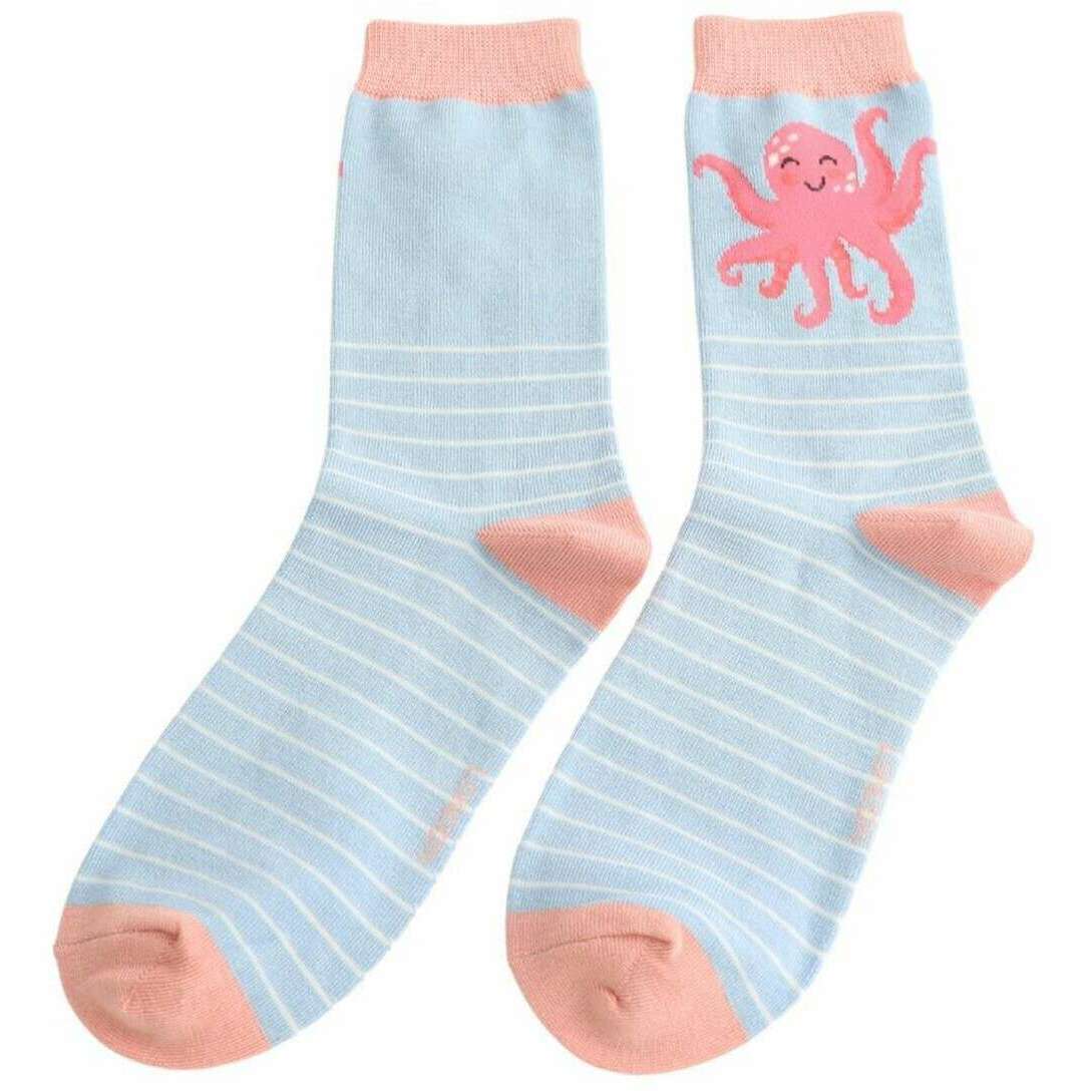 Miss Sparrow London ピンク タコ バンブー ソックス - パウダー ブルー