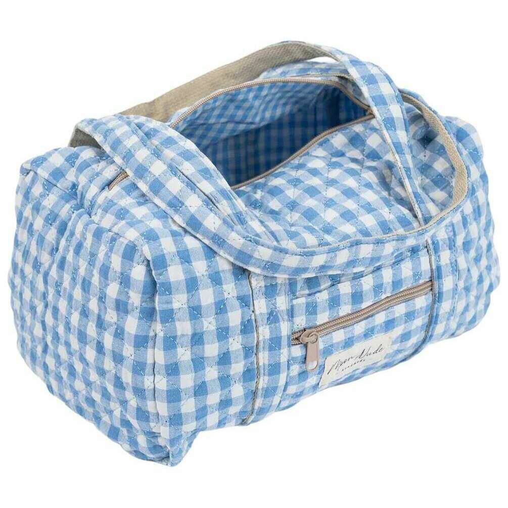 デザイナー Moon Nude によるこのブルー/ホワイトの女性用アズール ミニ ダッフル バッグは、コットン 100% で作られています。大きさは18cm(高さ)×31cm(幅)×18cm(奥行き)です。中性洗剤を使用し冷水で手洗いするか、裏返しにしてデリケート洗いすることをお勧めします。このバッグを良好な状態に保つために。すべてのバッグにはムーンヌードパッケージが付属しています。 Moon Nude Azure ミニ ダッフル バッグ - ブルー/ホワイトは、美しい手作りのキルティング デザインが特徴です。このバッグは、外側にファスナー付きポケット、広々とした内側、2つの大きなハンドルが特徴で、カジュアルな外出バッグやギフトに最適です。