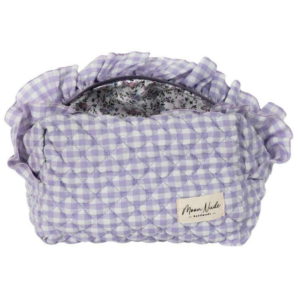 Moon Nude ブランドのこの女性用コケット ラージ メイクアップ バッグは、コットン 100% で作られており、パープルで表示されています。大きさは15cm(高さ)×25cm(幅)×15cm(奥行き)です。中性洗剤を使用し冷水で手洗いするか、裏返しにしてデリケート洗いすることをお勧めします。このバッグを良好な状態に保つために。すべてのバッグにはムーンヌードパッケージが付属しています。 Moon Nude Coquette ラージ メイクアップ バッグ - パープル/ホワイトは、お部屋や毎日のバッグに絶対の必需品です。この化粧ポーチは、よく使う製品をすべてまとめて安全に保管できると同時に、手作りのキルティングデザインでスタイリッシュでシックです。