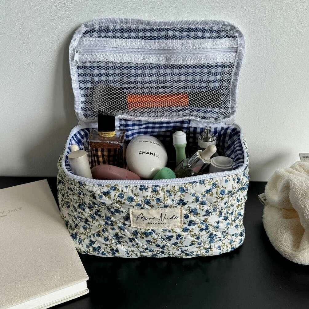 Moon Nude のこのよくできた女性用春バニティ バッグは、白/青/緑の色で、綿 100% で作られています。サイズは16cm(高さ)×22cm(幅)×14cm(奥行き)です。中性洗剤を使用し冷水で手洗いするか、裏返しにしてデリケート洗いすることをお勧めします。このバッグを良好な状態に保つために。すべてのバッグにはムーンヌードパッケージが付属しています。 Moon Nude Spring Vanity Bag - ホワイト/ブルー/グリーンは、旅行や日常使いに絶対の必需品です。このバニティ バッグは、すべてのメイクアップやスキンケアを 1 か所にまとめて収納できると同時に、手作りのキルティング デザインでスタイリッシュでファッショナブルです。