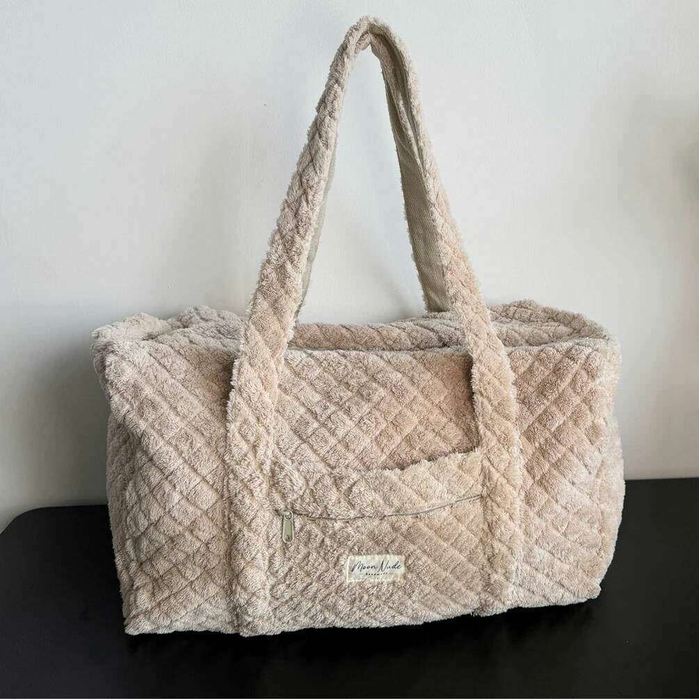 このレディース テディ ラージ ダッフル バッグは、コットン 100% で作られており、ベージュ色が特徴で、ブランド Moon Nude のものです。サイズは30cm(高さ)×50cm(幅)×28cm(奥行き)です。中性洗剤を使用し冷水で手洗いするか、裏返しにしてデリケート洗いすることをお勧めします。このバッグを良好な状態に保つために。すべてのバッグにはムーンヌードパッケージが付属しています。 Moon Nude Teddy ラージ ダッフル バッグ - ベージュは、美しい手作りのキルティング デザインが特徴です。このバッグは、外側のジッパー ポケット、広々とした内側、2 つの大きなハンドルが特徴で、週末の旅行やたくさんの持ち物を持ち運ぶのに最適です。