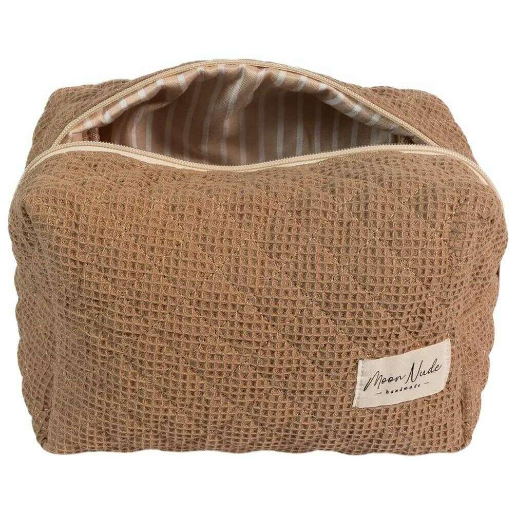 Moon Nude Waffle ラージ メイクアップバッグ - ブラウン/ホワイト
