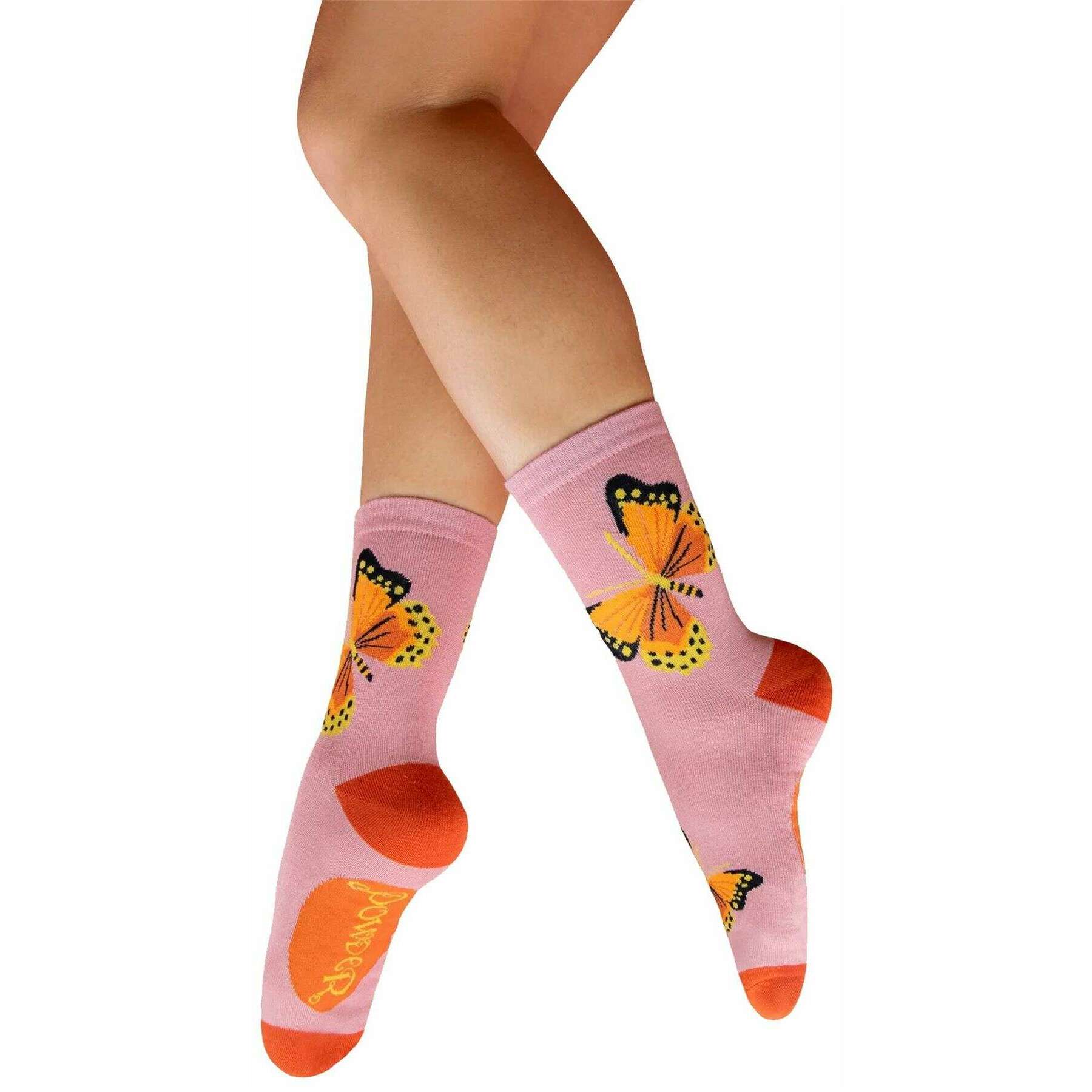 パウダービューティフルバタフライアンクルソックス - ピンク/オレンジ/イエロー
