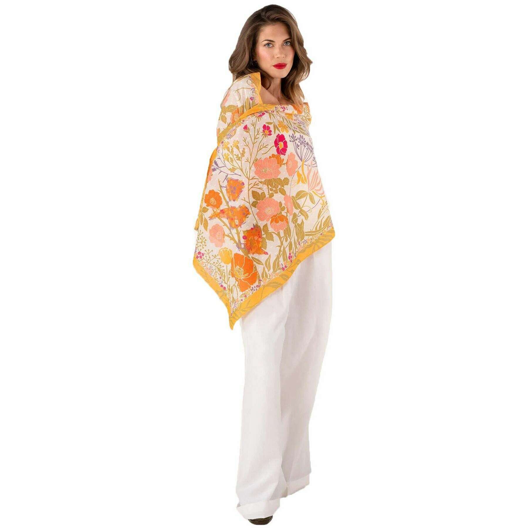 Powder Birds in Bloom コットン スカーフ - イエロー/クリーム/ベージュ