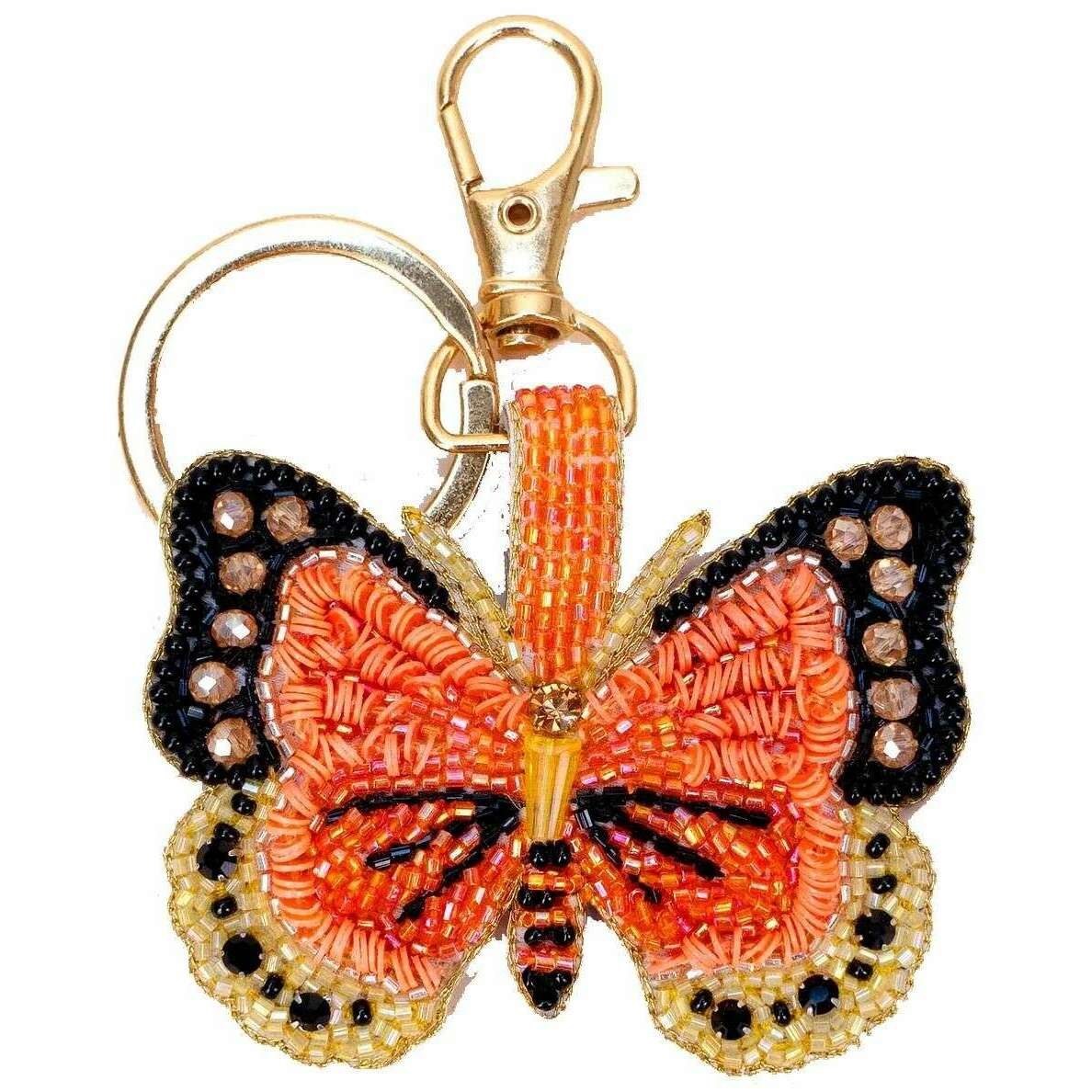パウダーボニーバタフライビーズキーリング - クリーム/オレンジ/ブラック