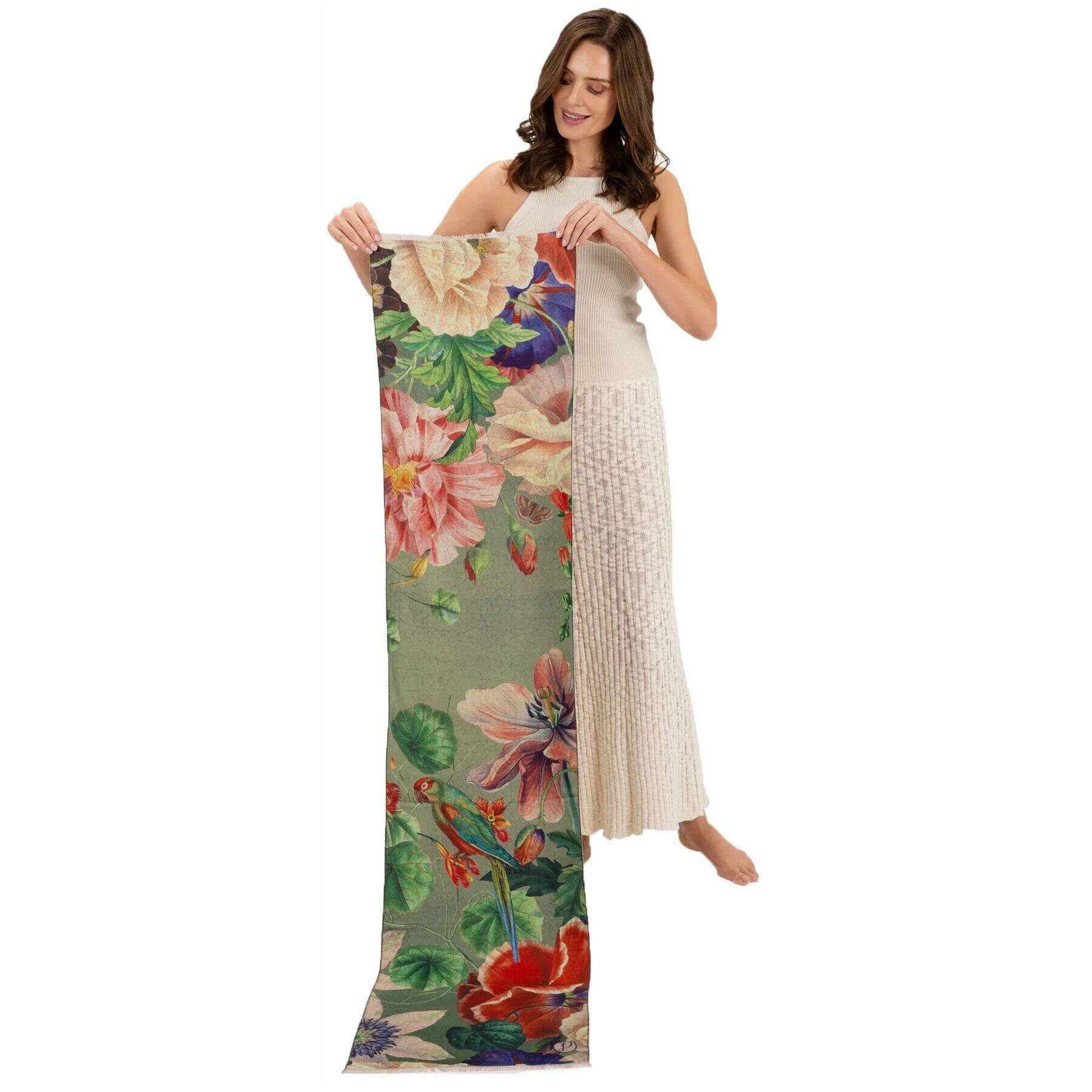 パウダーボタニカルブーケラックススカーフ - セージグリーン