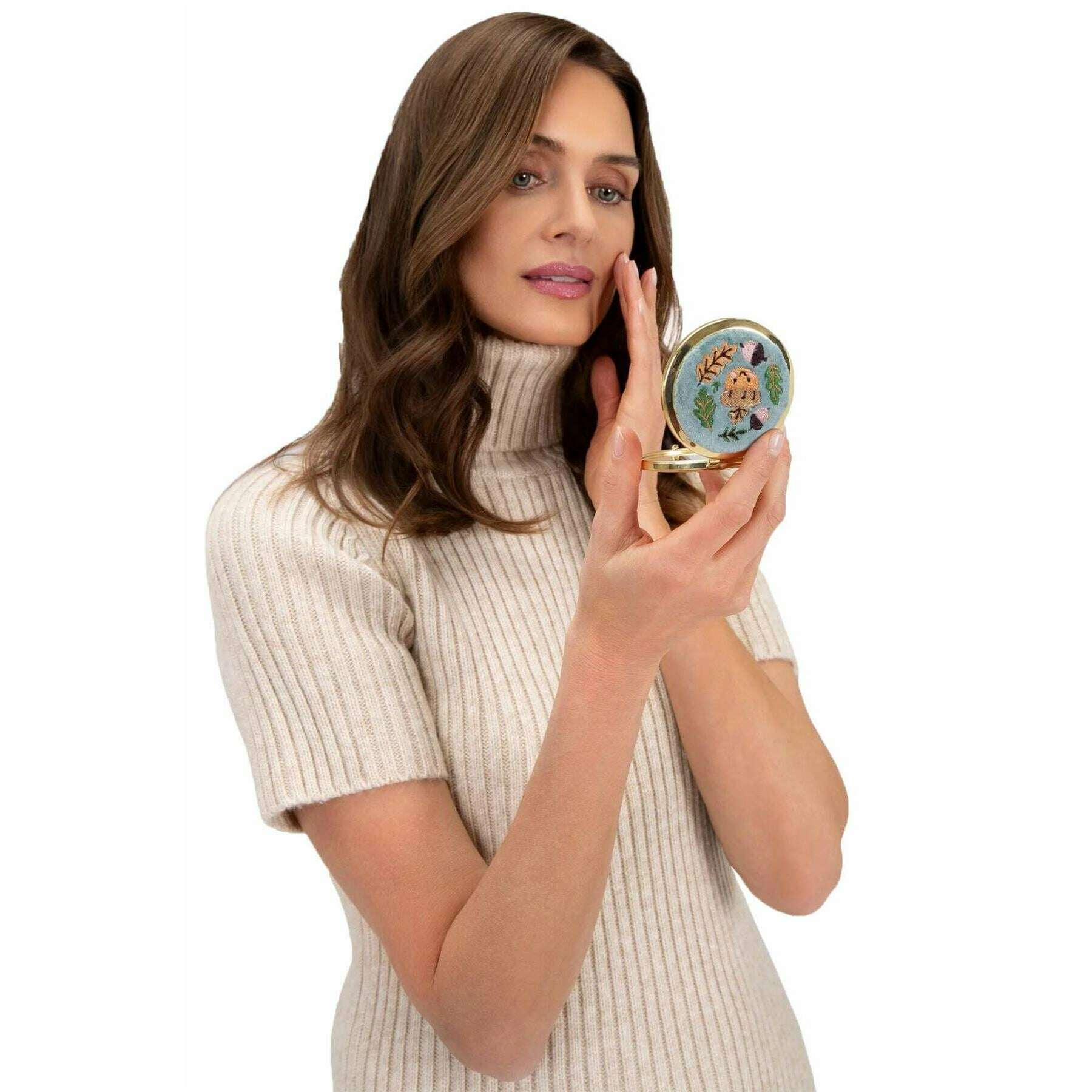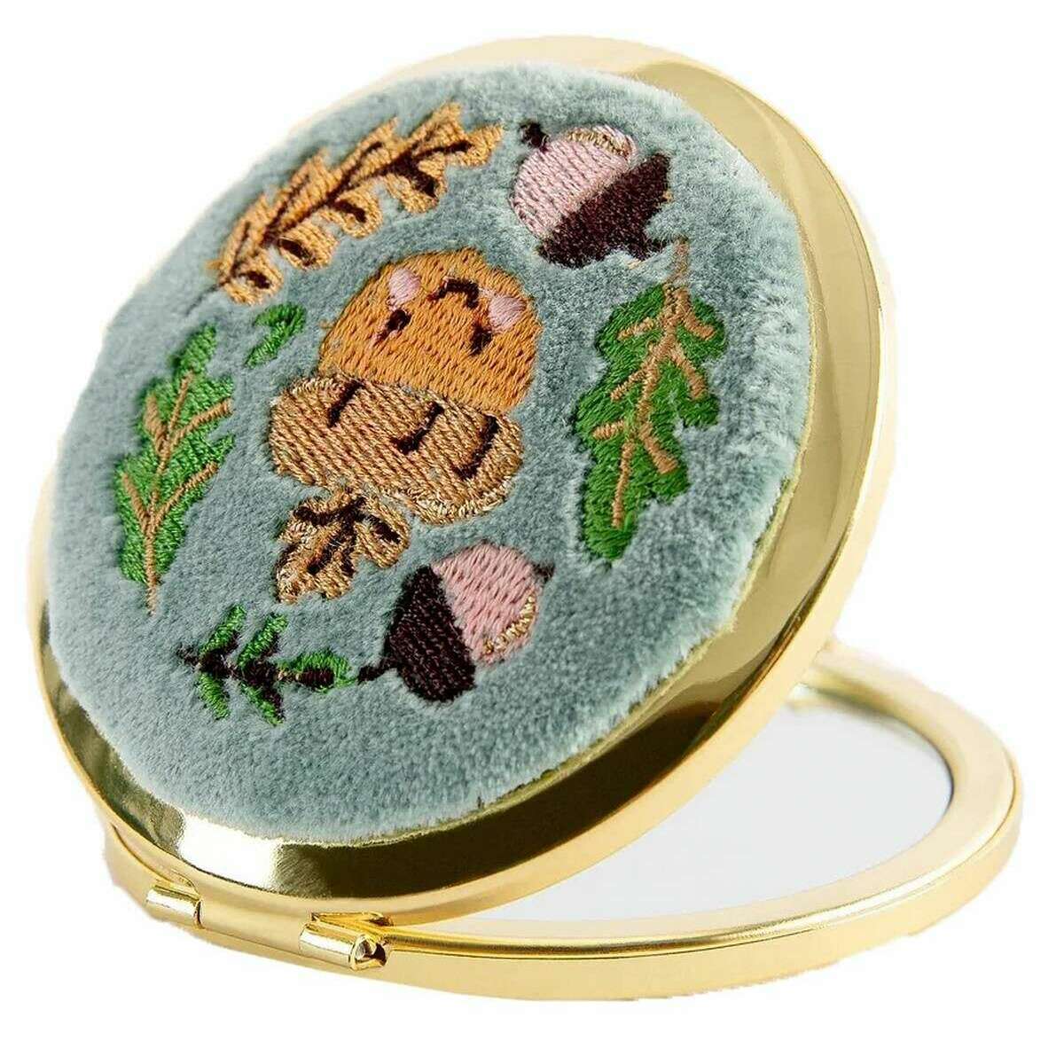 この女性の刺繍された幸せなドングリコンパクトミラーは、青色で紹介され、ブランドパウダーからの100%ポリエステルベルベットと金属から作られています。 7.5cm(高さ)x 7cm(幅)を測定します。すべてのコンパクトにはパウダータグが付いています。粉末刺繍された幸せなドングリコンパクトミラー - アイスブルーはあなたのハンドバッグに必須です。コンパクトで美しく装飾された複雑な刺繍のディテールで、この鏡は内側の美しさを反映するだけではありませんが、外側もゴージャスに見えます。