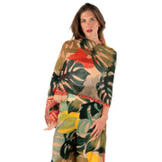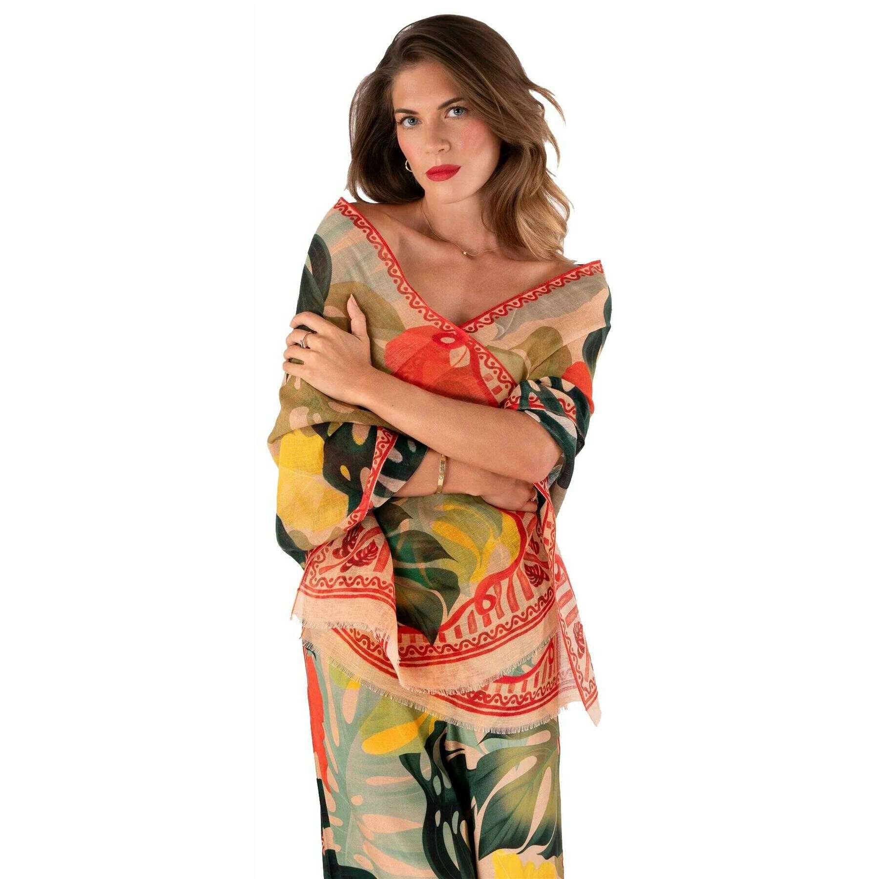 パウダー エキゾチック リーフ リネン コットン スカーフ - ベージュ/レッド/ブルー