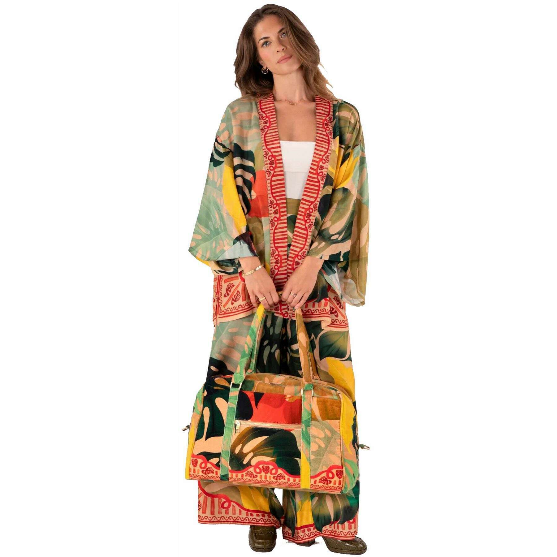 パウダー エキゾチック リーフ ラックス ウィークエンド バッグ - ベージュ/レッド/グリーン
