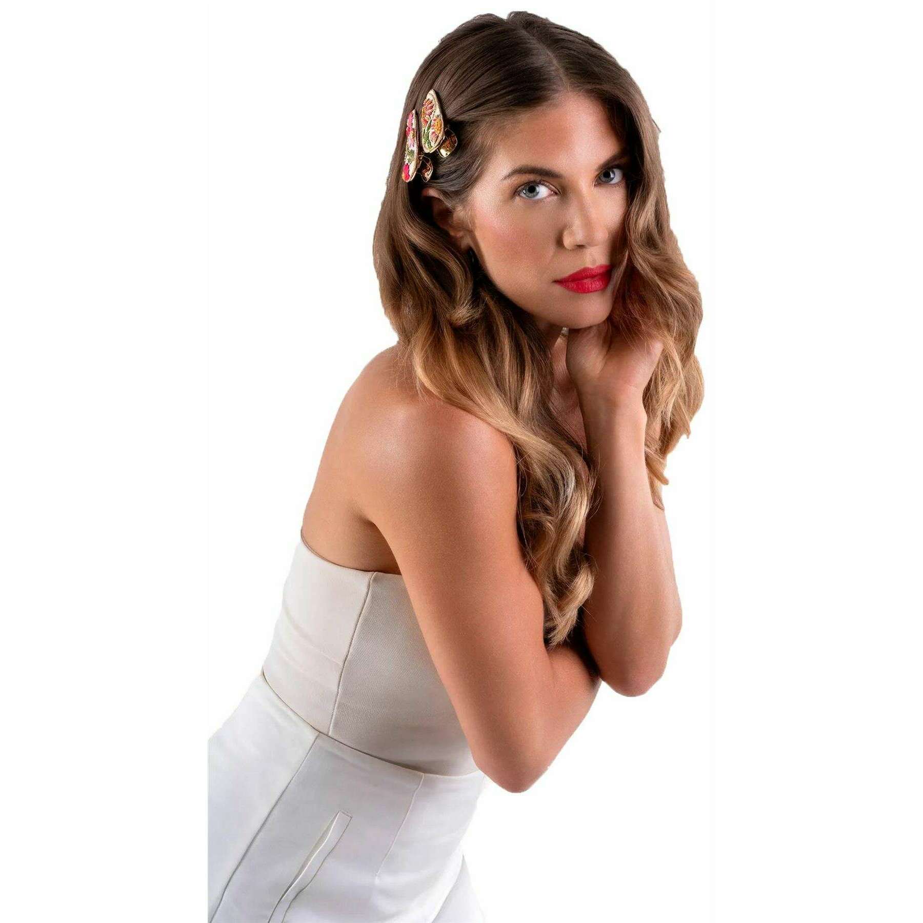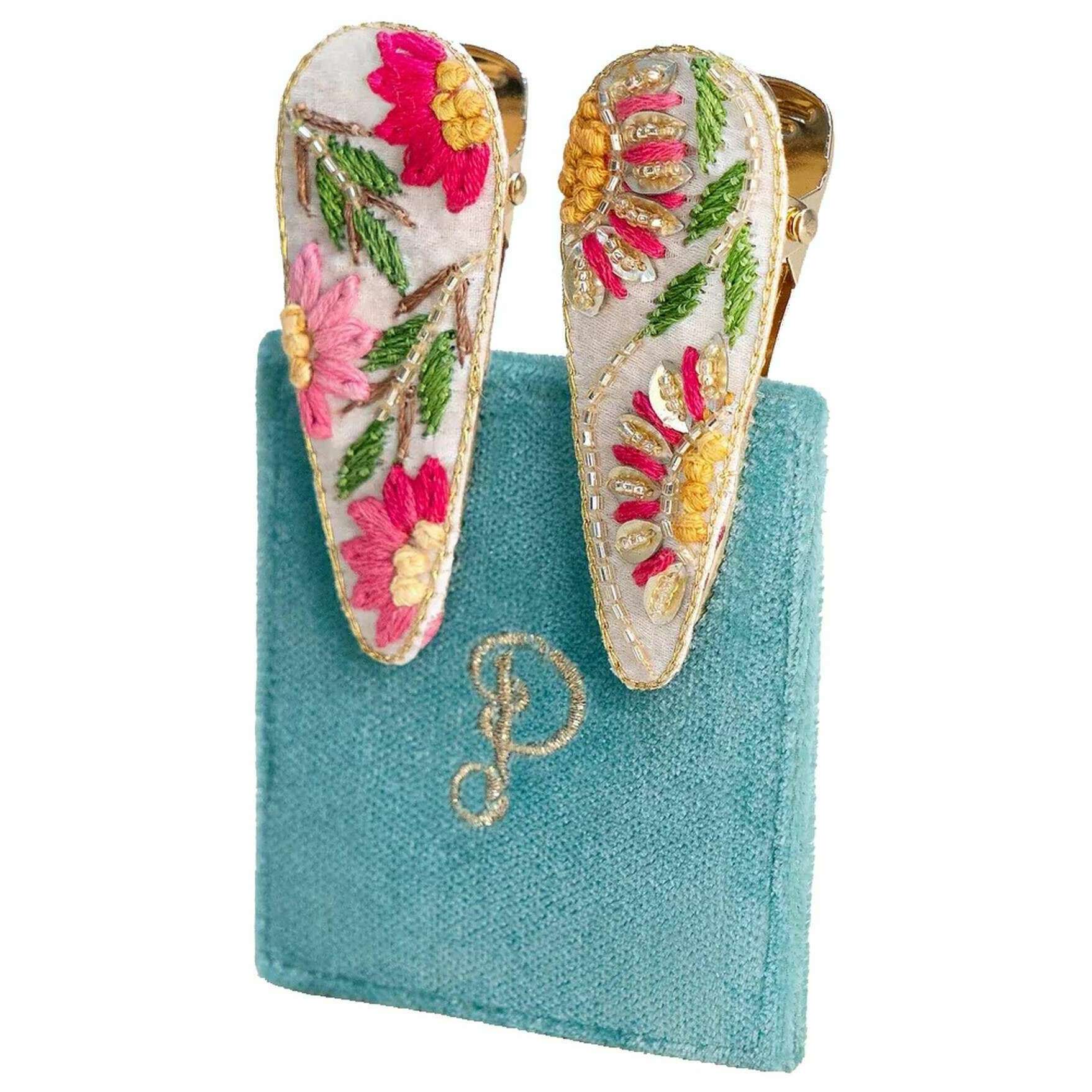 パウダー フローラ ヘアクリップ - ホワイト/ピンク/グリーン/ブルー