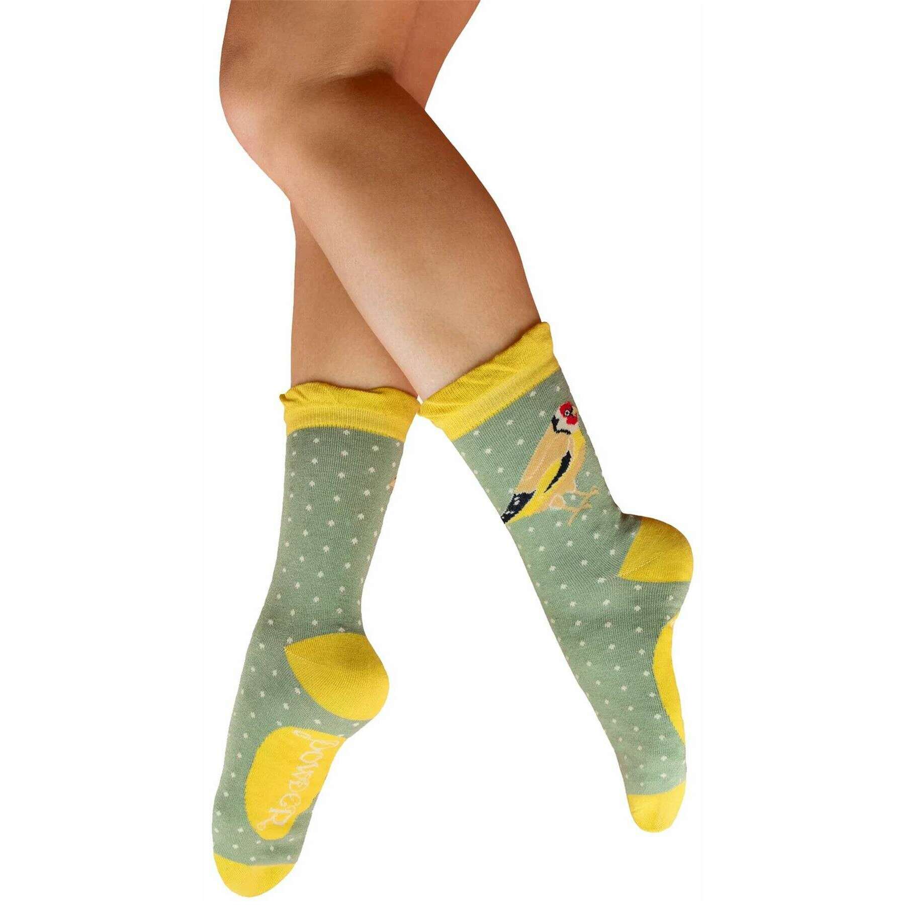 パウダーゴールドフィンチ アンクル ソックス - グリーン/イエロー/ホワイト