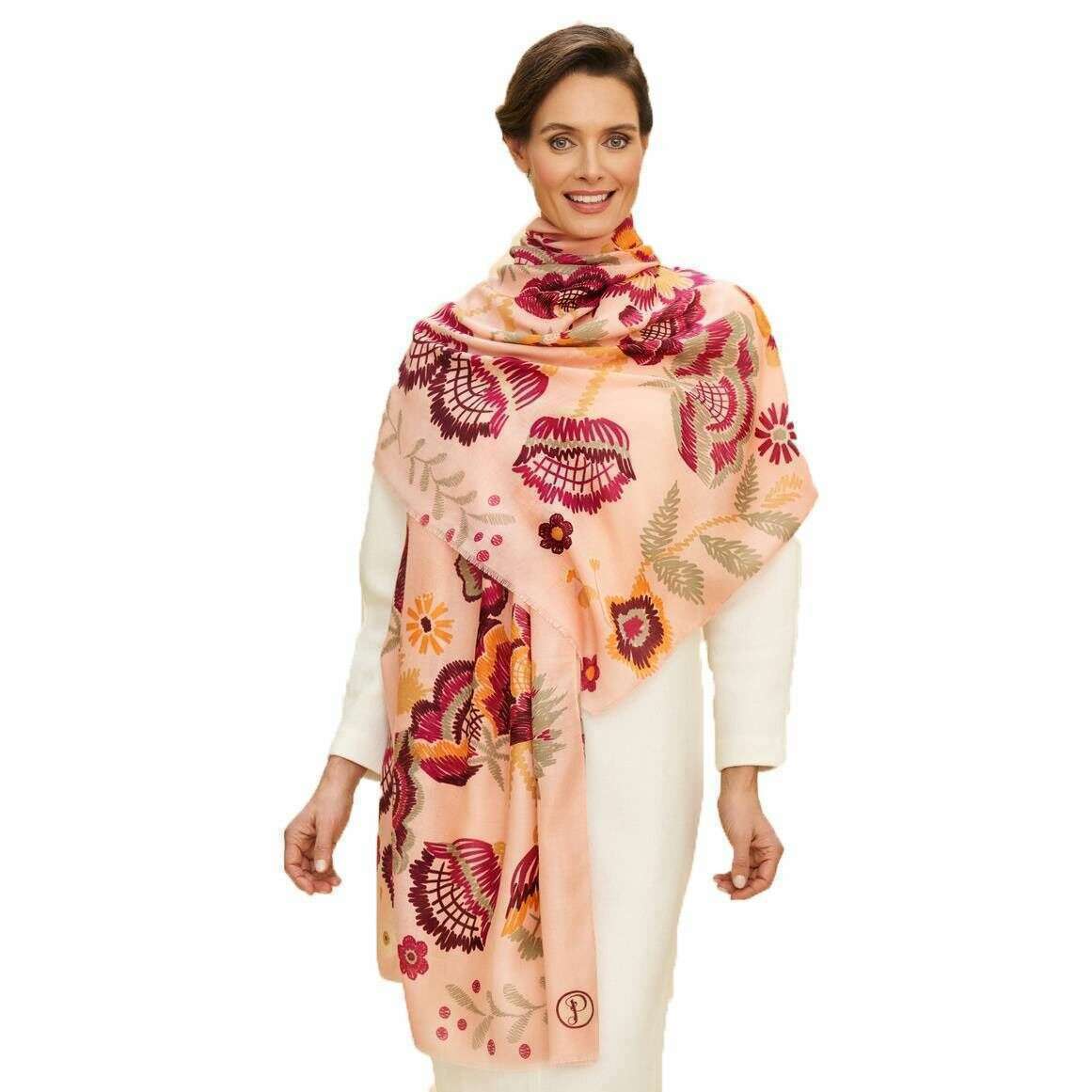 パウダープリントの花の対称性スカーフ - ピンク