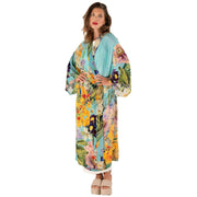 パウダースプリングフローラ着物ドレス - ブルー/グリーン/イエロー