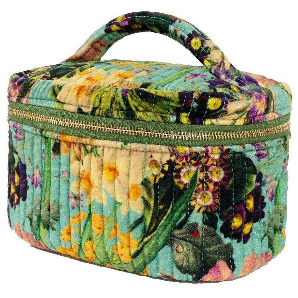 パウダー スプリング フローラ キルティング バニティ ケース - ブルー/ベージュ/グリーン