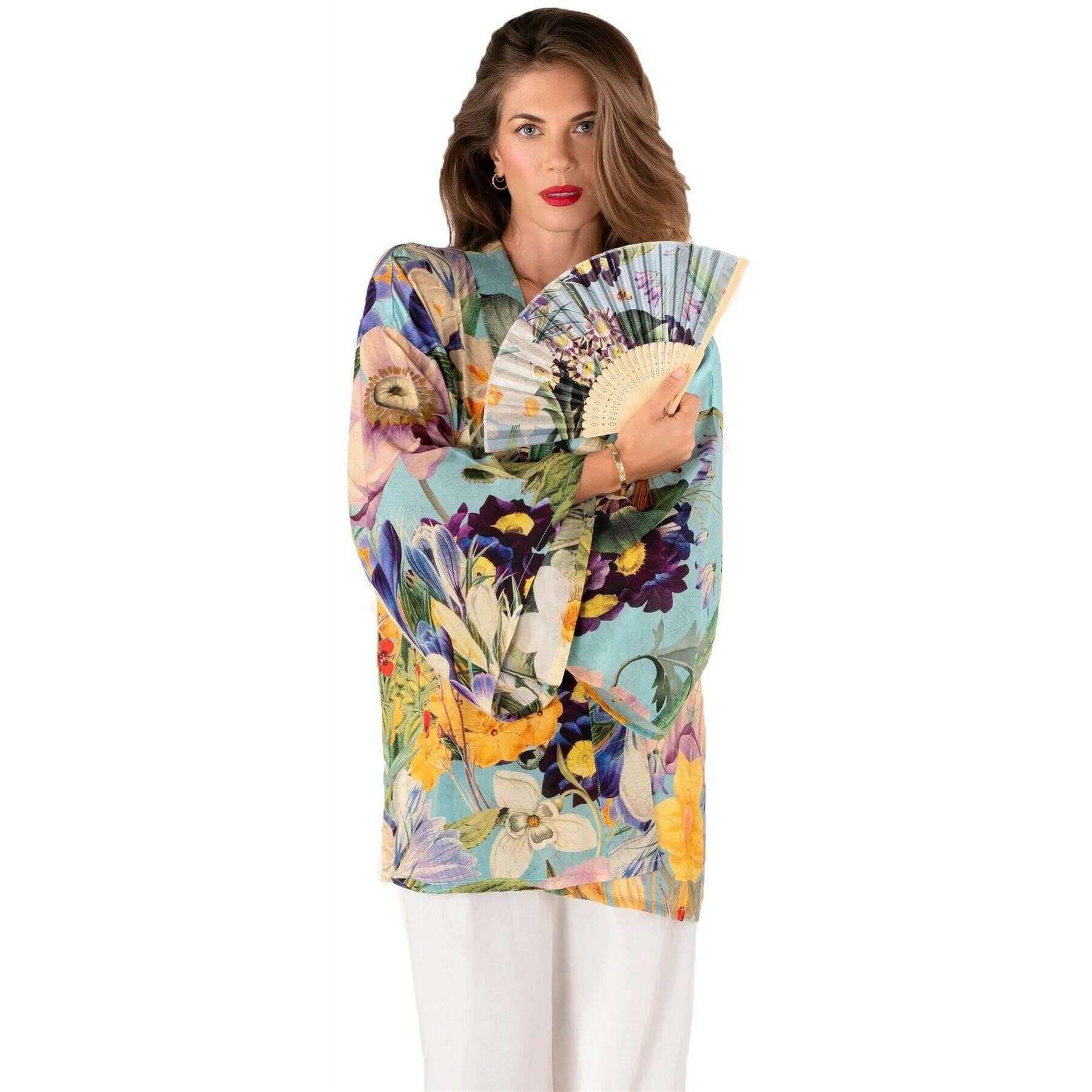 パウダースプリングフローラサテンファン - ブルー/パープル/グリーン