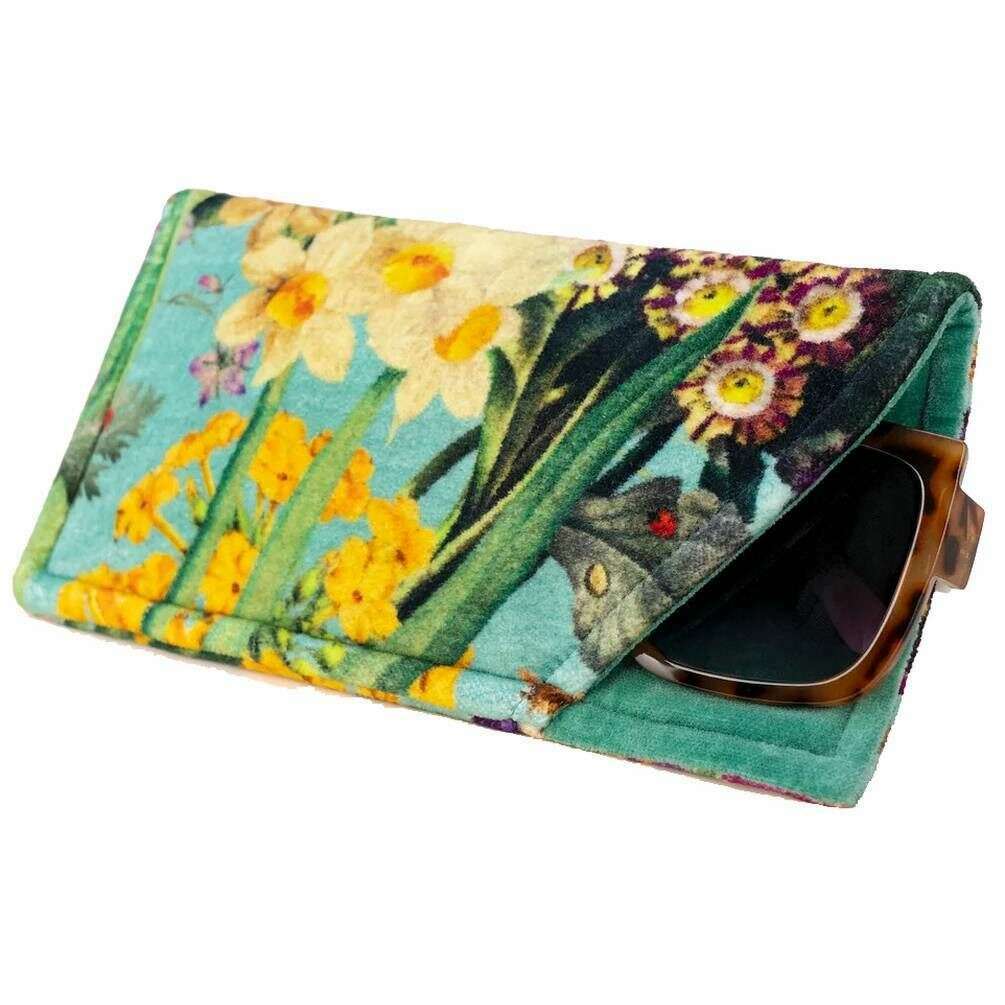 パウダー スプリング フローラ ベルベット サングラス ポーチ - ブルー/ベージュ/グリーン