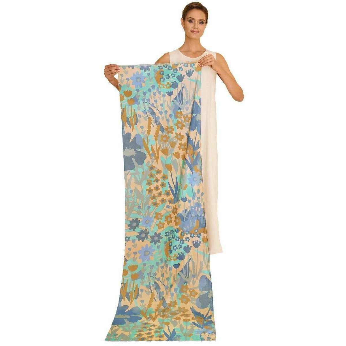 パウダースプリングタイムフローラルコットンスカーフ - デニムブルー
