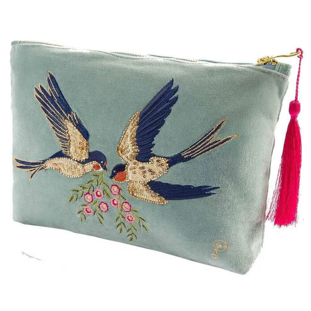 パウダー急降下ツバメのベルベットジップポーチ - アイスブルー