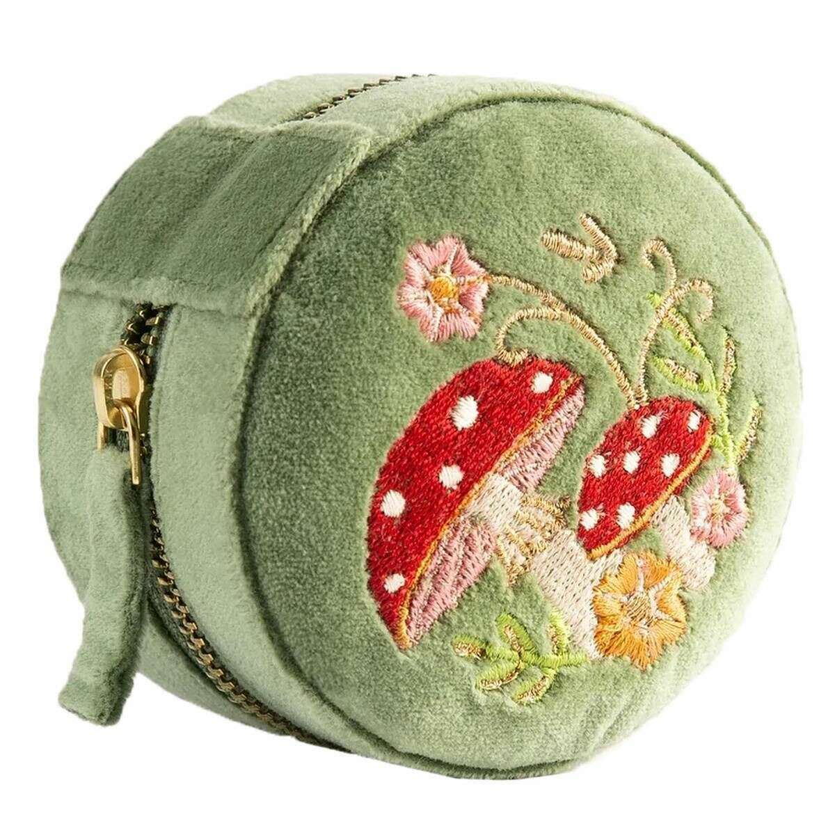 パウダートードストゥールラウンドベルベットジュエリーボックス - セージグリーン