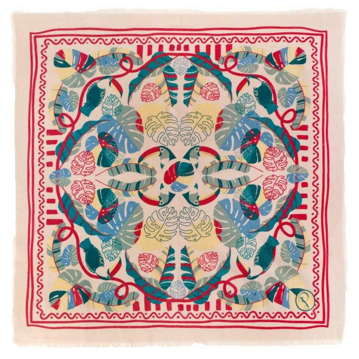 パウダー トロピカル オオハシ バンダナ - ベージュ/レッド/ブルー