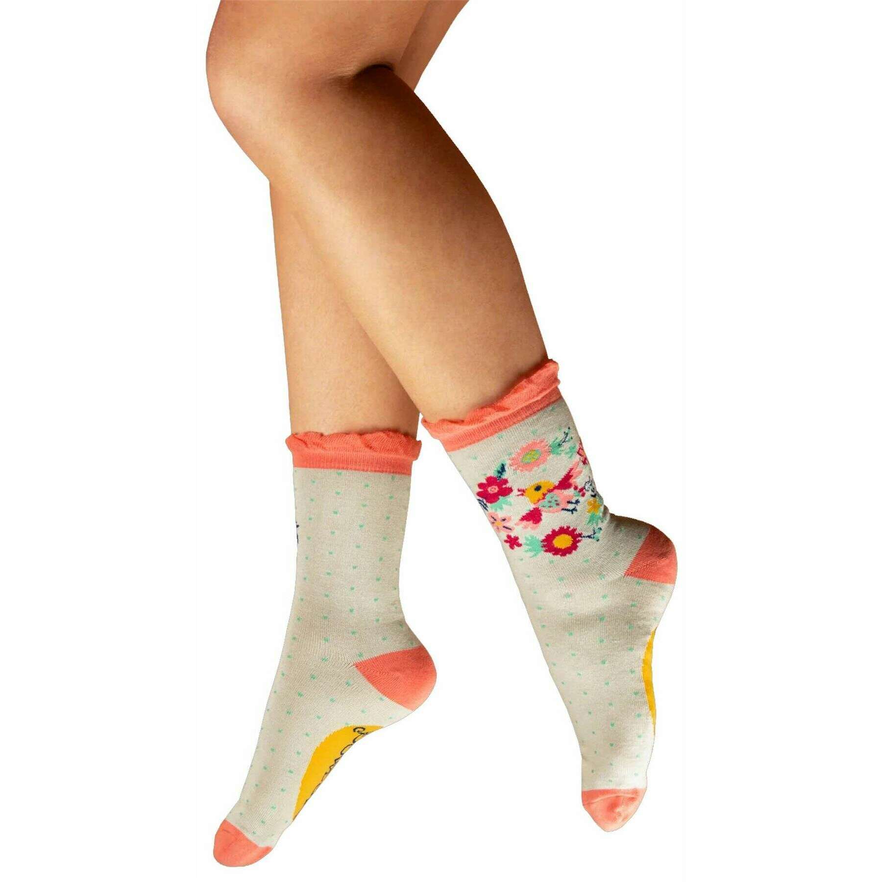 パウダー トゥイーティー リース アンクル ソックス - コーラル/ホワイト/イエロー