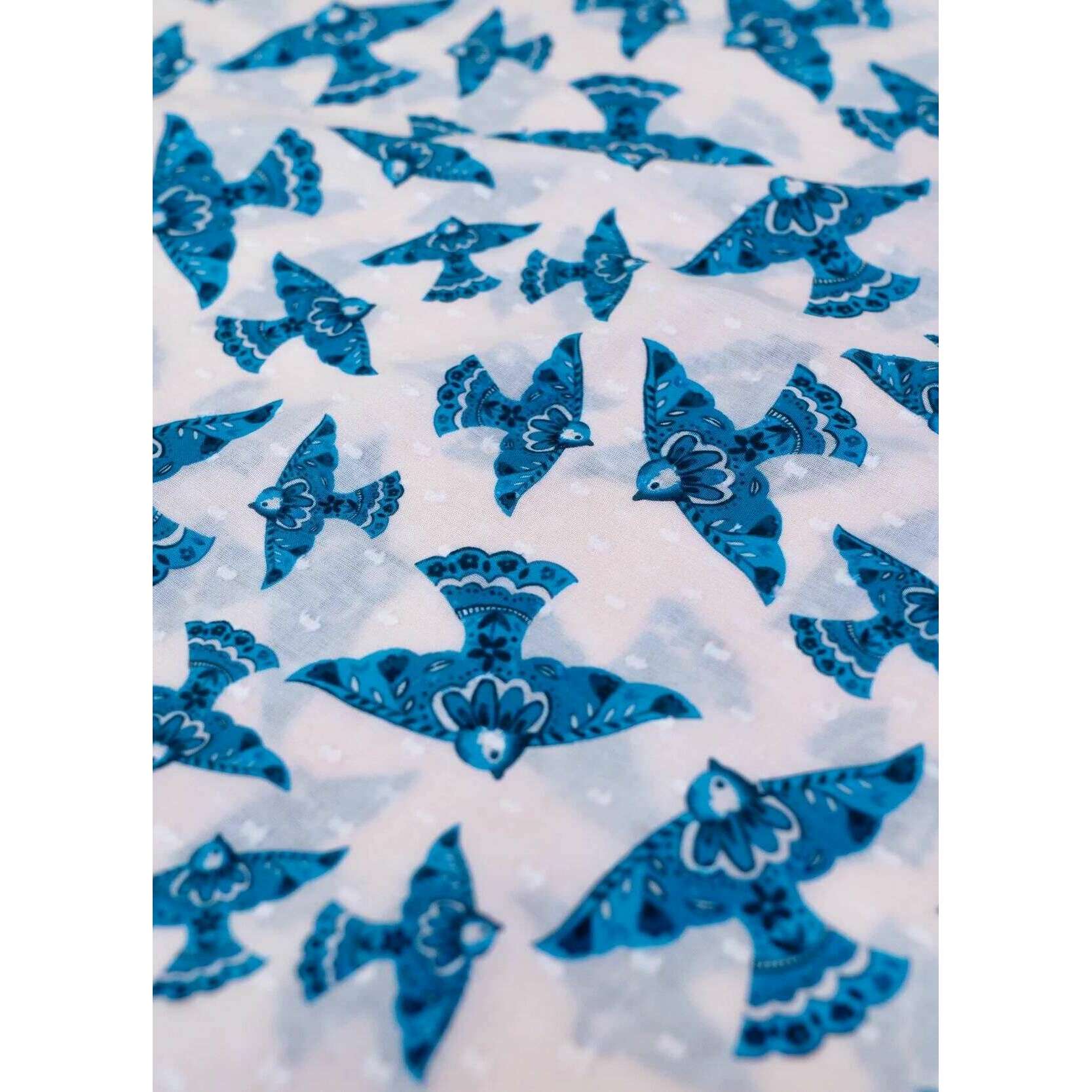 パウダー水彩鳥インフィニティ スカーフ - ブルー/ベージュ