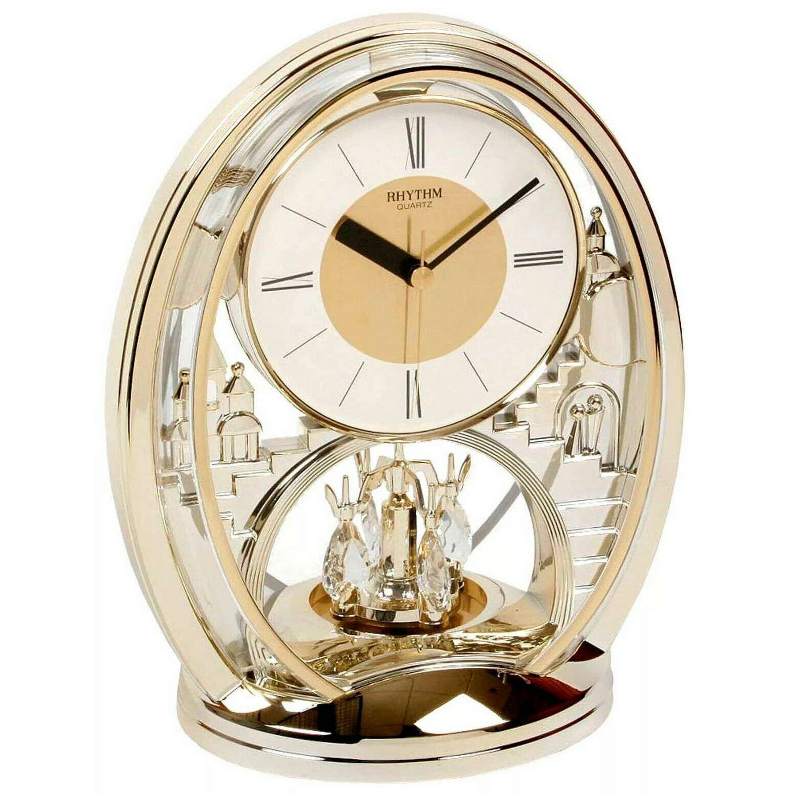 Rhythm Gilt オーバル回転振り子 Cont マントルクロック - ゴールド