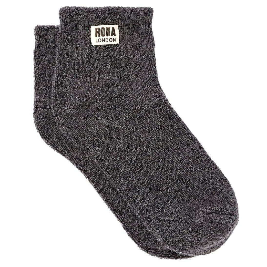 デザイナー Roka オーガニックコットン 82%、ナイロン 10%、エラスタン 2% を使用した、色あせたブラックトーンのレディース ソックスをお届けします。また、色あせた黒い靴下は無地のパターンでデザインされており、すべての靴下にはロカのパッケージが付いています。の Roka Watford Socks - Faded Black は、毎日の着用に最適なソックスです。ふわふわのオーガニックコットンブレンドにより、一日中足がぴったりと快適に保たれ、美しい黒色がスタイリッシュでトレンディな印象を保ちます。この靴下には、 Roka サイドにロゴがステッチされ、定番の外観を与えます。