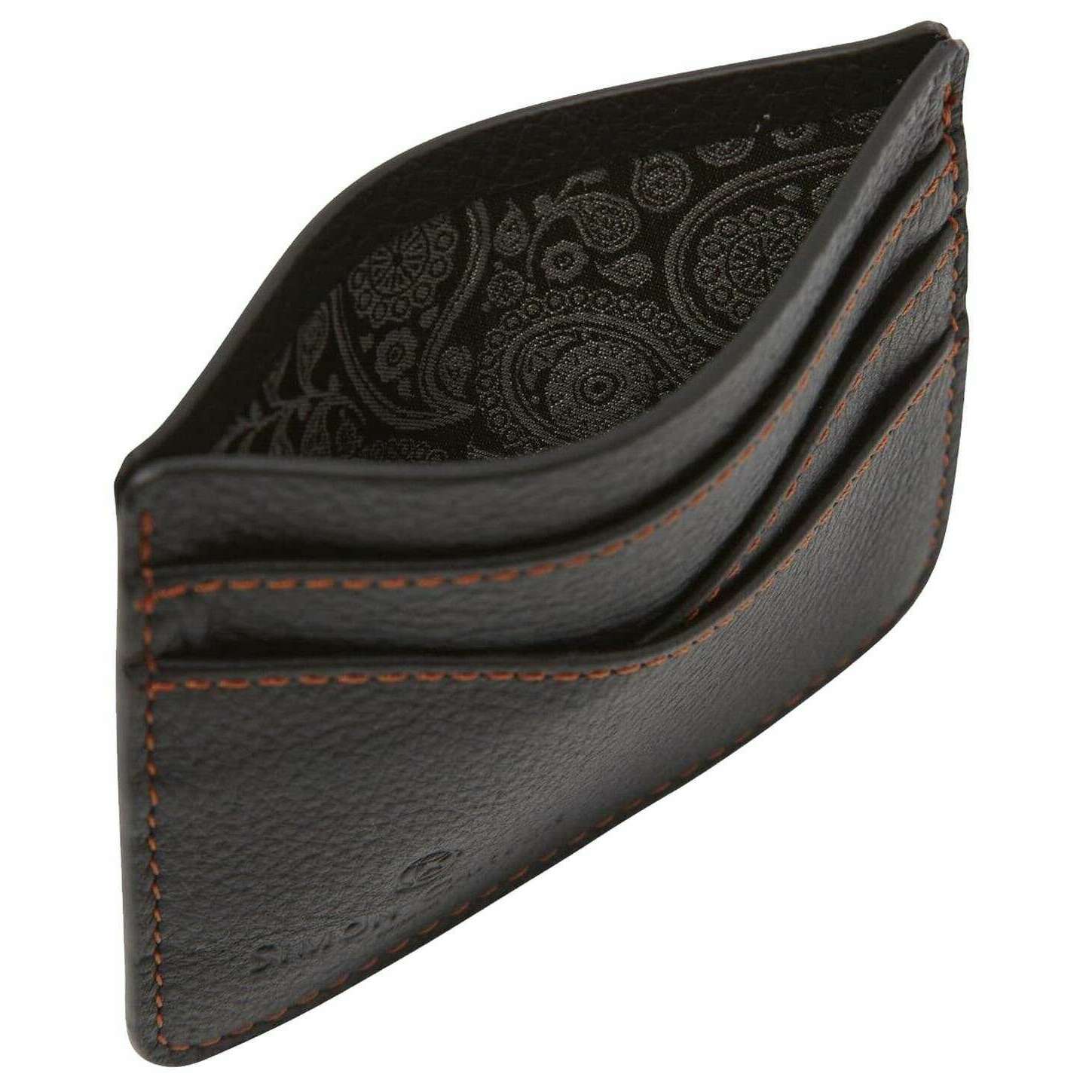 100% レザーで作られた、デザイナーによるこのブラックのメンズ ウェーブ クレジット カード ホルダーです。 Simon Carter. すべての財布にはサイモン カーターのパッケージが付属しています。の Simon Carter Wave クレジット カード ホルダー - ブラックは日常使いに最適です。この黒と茶色の財布は、ユニークな波のデザイン、3 つのカード ホルダー、内側のペイズリー柄の裏地が特徴です。この財布はあらゆる機会に最適なギフトです。