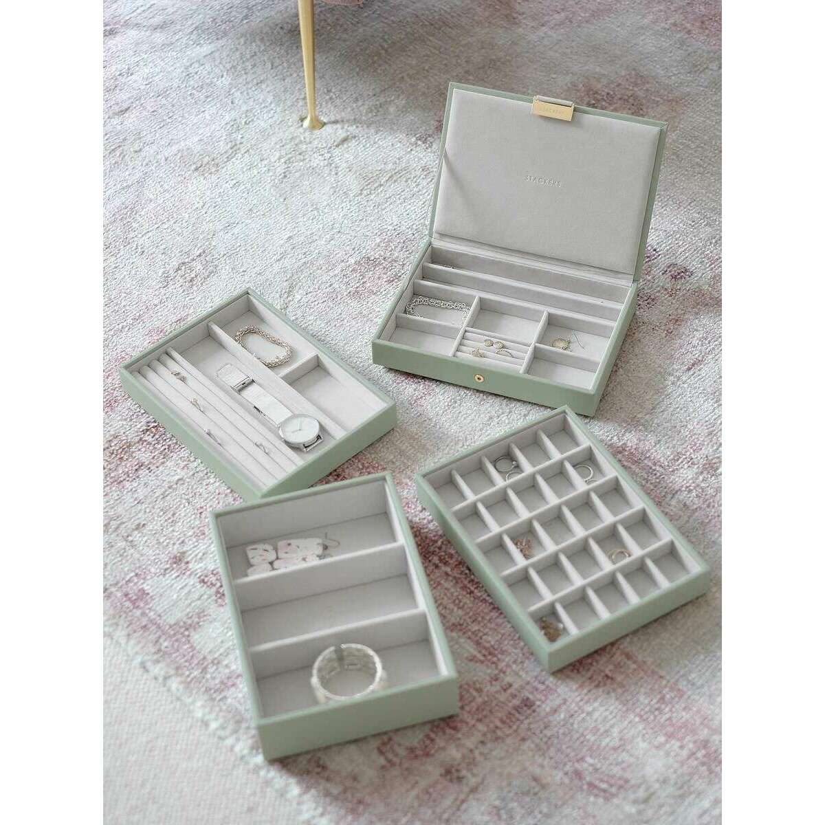 Stackers クラシック ジュエリー ボックス 4 個セット - セージ グリーン