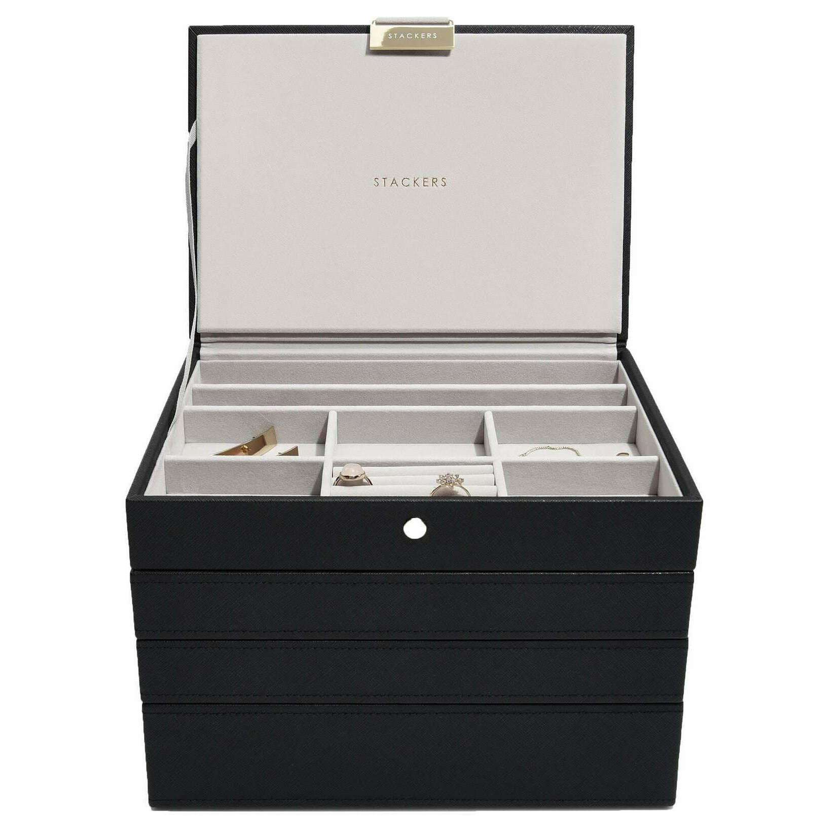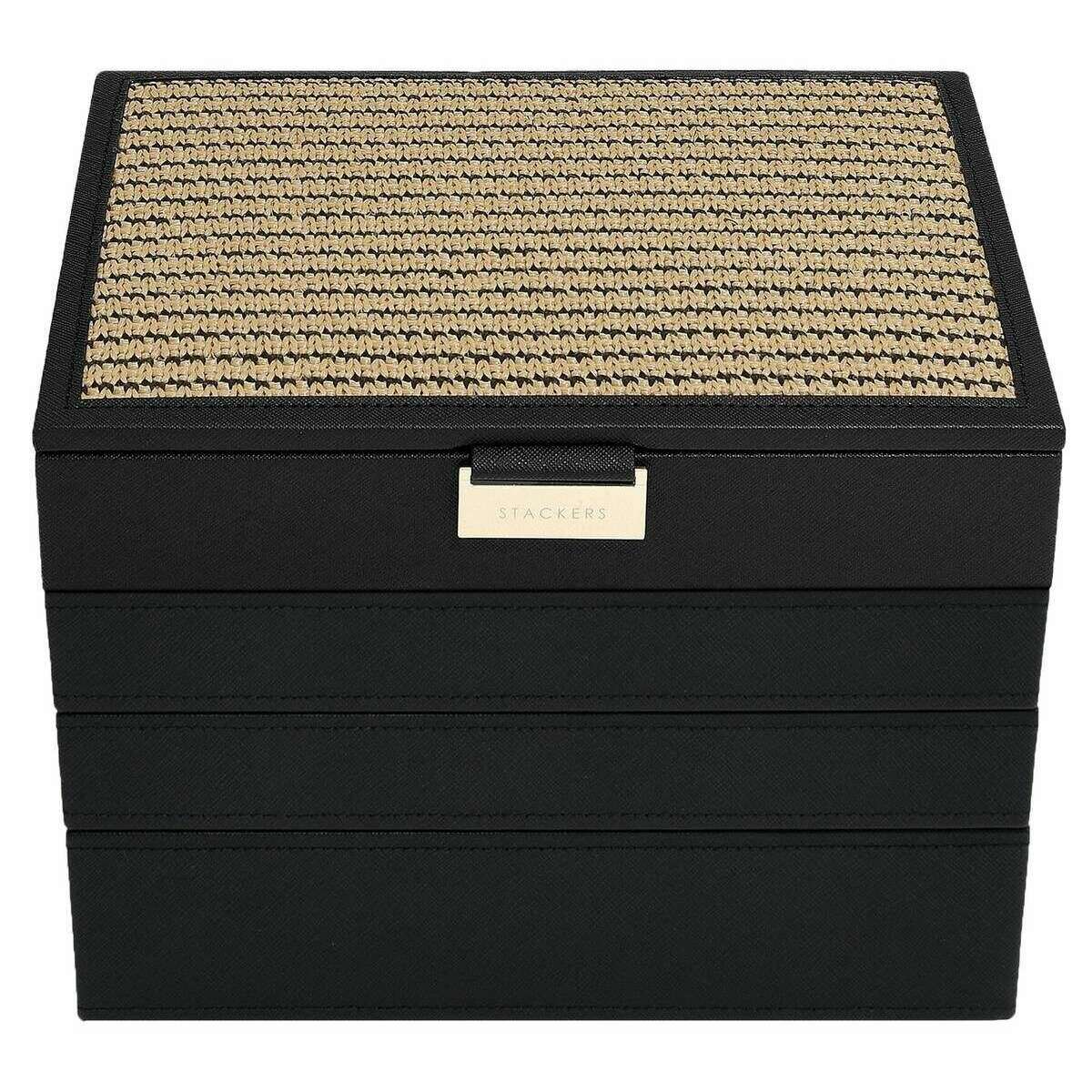 Stackers クラシック ジュエリー ボックス 4 個セット - ブラック ラフィア