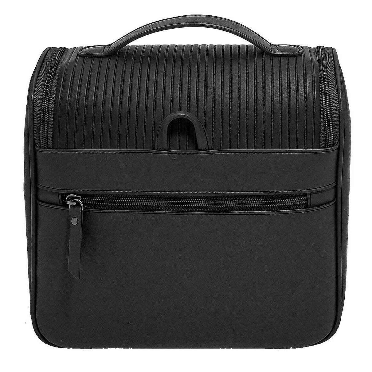 このレディース フルーテッド ハンギング ウォッシュ バッグをご紹介します。 Stackers, 黒色の合成皮革で作られています。サイズは26cm(高さ)×26cm(幅)×15.5cm(奥行き)です。すべてのバッグはスタッカー包装で完成します。の Stackers 溝付きハンギングウォッシュバッグ - ブラックは外出時の必需品です。この上品な溝付きの黒の吊り下げ式ウォッシュバッグには 3 つのメインコンパートメントがあり、1 つは取り外し可能なトイレタリーバッグです。便利な吊り下げフックと多くのコンパートメントで週末の休暇に最適です。