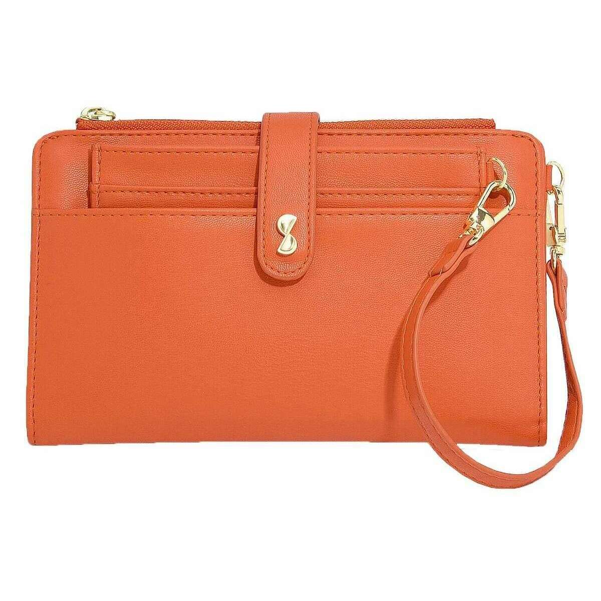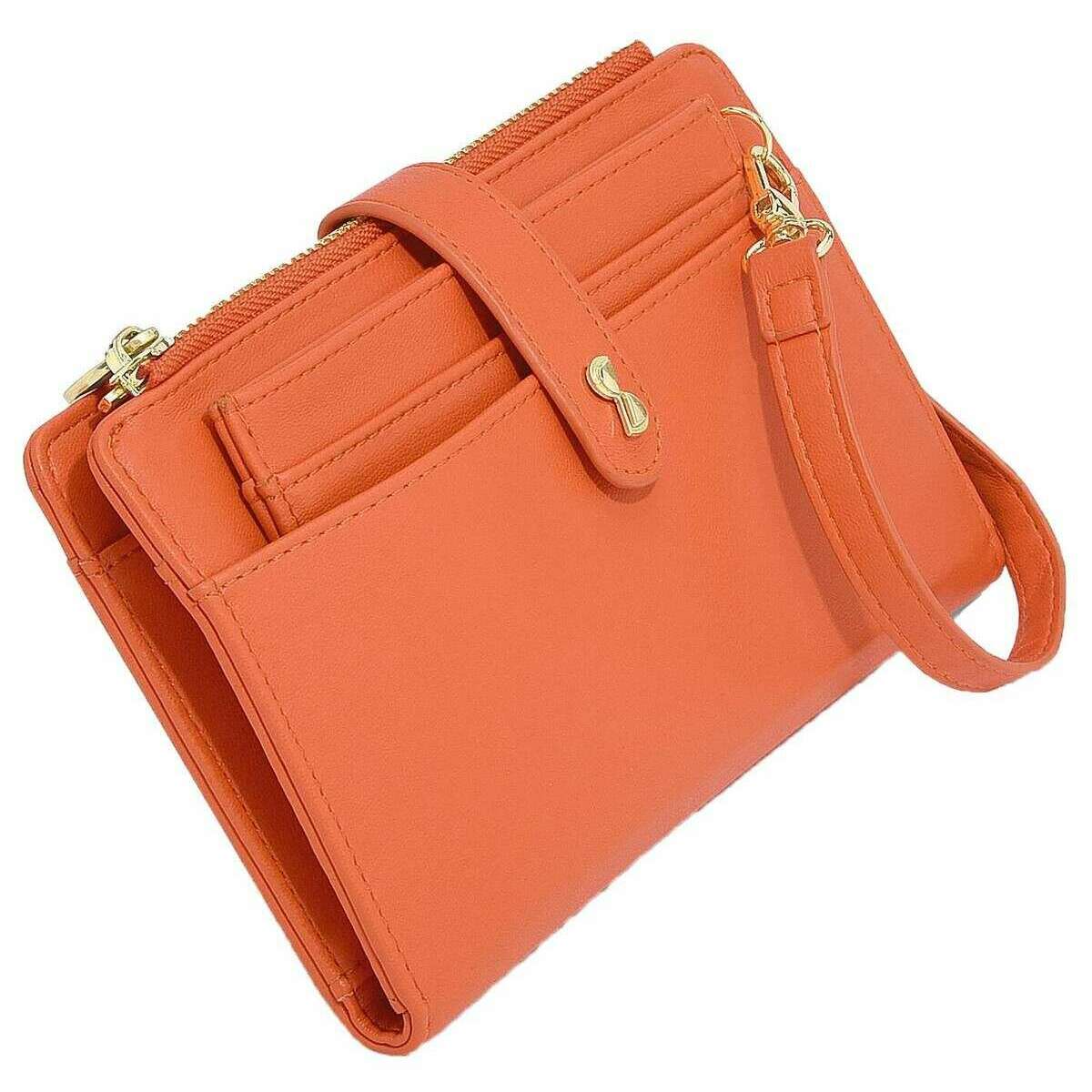 合成皮革で作られた、デザイナーによるオレンジ色の女性用の大きな財布です。 Stackers. サイズは12.5cm(高さ)×19.5cm(幅)×3cm(奥行き)です。すべての財布にはスタッカーパッケージが付属しています。の Stackers 大きな財布 - オレンジは外出時の必需品です。このクラシックでトレンディーなオレンジ色の財布には、お金やカードを収納できる複数のポケット、取り外し可能なカード入れ、化粧鏡が付いています。取り外し可能なリストストラップと外側の携帯電話ポケットが付属しています。あらゆるお出かけにぴったり!