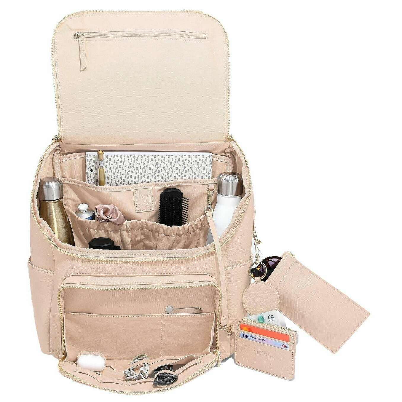 ブランドがお届けする Stackers, このブラッシュ ピンク/ゴールドの女性用高級バックパックは、リサイクル PU から作られています。サイズは35cm(高さ)×31cm(幅)×15.7cm(奥行き)です。すべてのバッグはスタッカー包装で完成します。の Stackers 高級バックパック - ブラッシュピンク/ゴールドは日常使いに最適です。このピンクのバックパックには、ラップトップ ポケット、複数のコンパートメント、さまざまな小さなポケットが付いています。調節可能なバックパックストラップとジッパーが付いており、安全性を高めています。