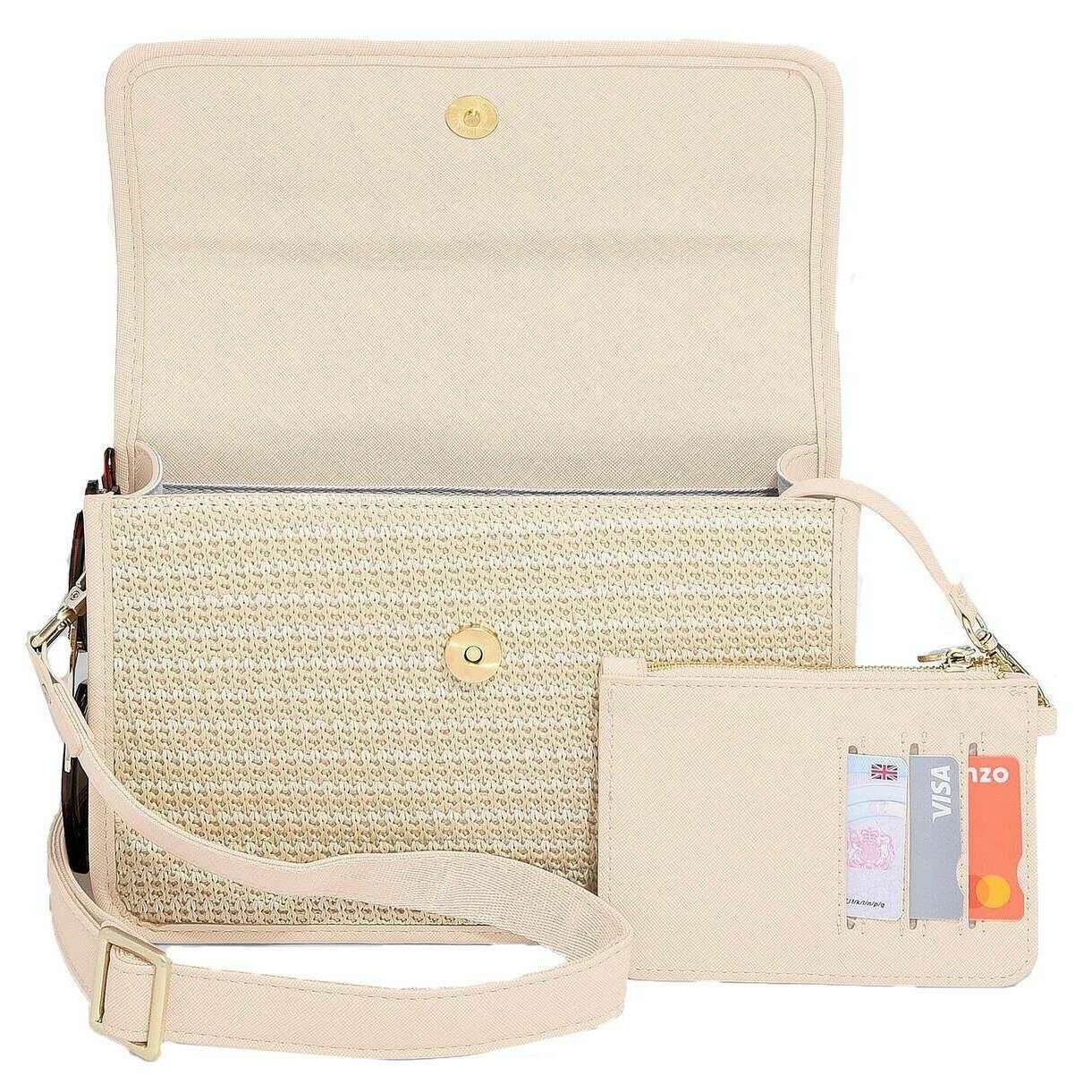 この女性用ラフィアクロスボディバッグはブランドによって作られています。 Stackers ピンク色で、ラフィア効果とフェイクレザーで作られています。サイズは17cm(高さ)×7.5cm(幅)×25cm(奥行き)です。すべてのバッグはスタッカー包装で完成します。の Stackers ラフィア クロスボディ バッグ - ブラッシュ ピンク ラフィアは外出時の必需品です。このユニークでトレンディなピンクのラフィアクロスボディバッグには、複数のポケット、スタッカー化粧鏡、取り外し可能なカード入れが付いています。取り外し可能で調節可能なクロスボディストラップで日常使いに最適です。