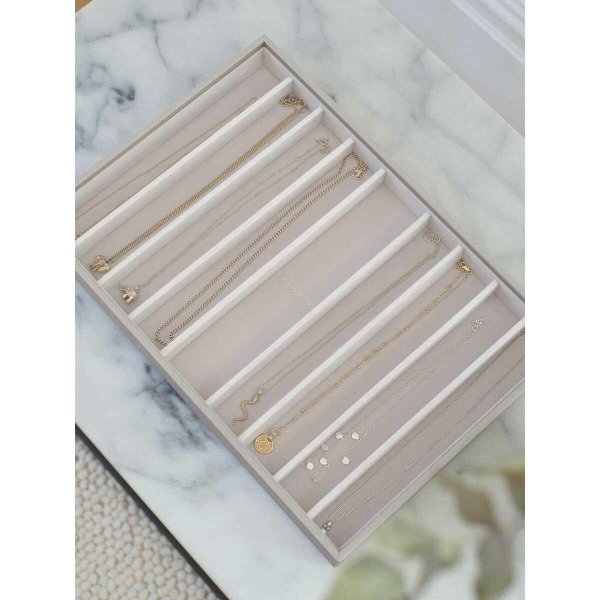 このよくできた女性用スーパーサイズ ネックレス レイヤーは、 Stackers トープベージュ色で、合成皮革とベルベットで作られています。サイズは4cm(高さ)×36cm(幅)×23.9cm(奥行き)です。このジュエリーボックスを良好な状態に保つために、きれいに拭くことをお勧めします。すべてのジュエリー ボックスにはスタッカー包装が施されています。の Stackers スーパーサイズ ネックレス レイヤー - トープ ベージュは、ネックレスを整理して絡まらないようにデザインされています。柔らかいベルベットの内側を備えたこのジュエリーは、たくさんのジュエリーを整理して破損から守る必要がある人にきっと好印象を与えるでしょう。シンプルなデザインでどんな部屋にもマッチするので、タンスやドレッサーに置いておくのに最適です。また、他の特大サイズのレイヤーと組み合わせて完璧なジュエリーボックスを作成することもできます。