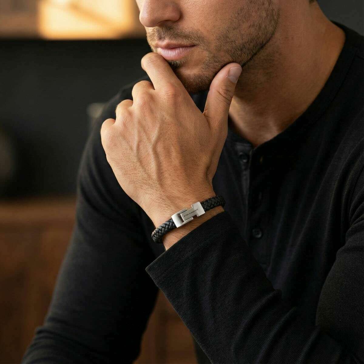 Steel & Barnett ブランドのこのメンズ アーチ編み込みレザー ブレスレットは、100% ナッパ レザーとステンレス スチールで作られており、色はブラックです。すべてのブレスレットにはスチールとバーネットのパッケージが付属しています。スティール & バーネット アーチー ブレイデッド レザー ブレスレット - ブラックは、シンプルさとエレガンスの完璧なバランスを体現しています。本物のナッパレザーから巧みに手作りされた滑らかな 8 mm バンドは、どんなスタイルにも適したクリーンでミニマルな美しさを実現します。デザインは、STEEL & BARNETT のロゴが細かく刻印された、特徴的なつや消しシルバーのクラスプによって高められ、さりげなく差別化を図っています。長寿命を目指して作られたこのブレスレットには、耐久性と耐腐食性で定評のある高品質 316L ステンレス鋼のクラスプが採用されています。マグネット式の留め具により簡単に装着でき、一日中安全で快適なフィット感を提供します。多用途で洗練されたアーチーは、フォーマルな場面からカジュアルな場面までスムーズに移行し、あらゆる服装に控えめな洗練の層を加えます。