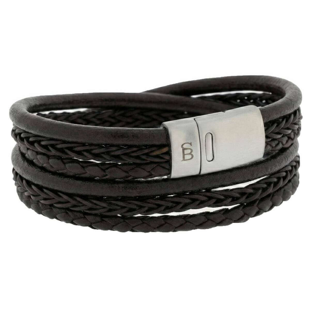 スチール & バーネット ボナッチ レイヤード マルチストランド レザー ブレスレット - ブラウン