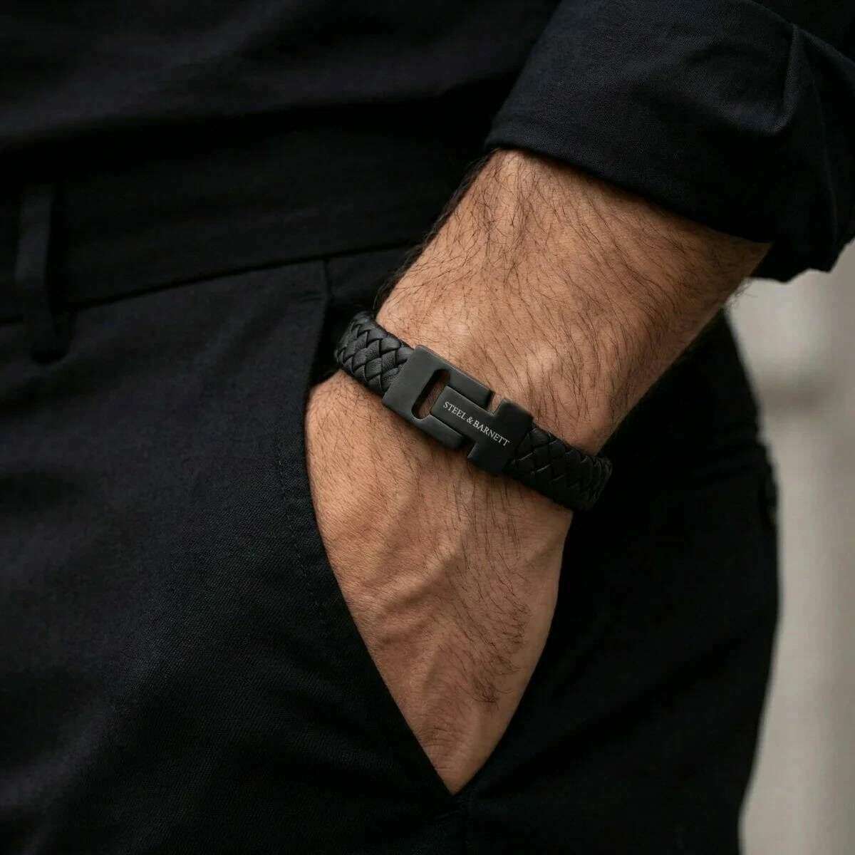 このメンズ ハリソン 分厚い編み込みレザー ブレスレットは、100% ナッパ レザーとステンレス スチール製で、黒色が特徴で、Steel & Barnett ブランドのものです。すべてのブレスレットにはスチールとバーネットのパッケージが付属しています。 Steel & Barnett Harrison 厚手の編み込みレザー ブレスレット - ブラック エディションは、プレミアムな職人技と洗練されたデザインの洗練された融合を示しています。 100% 本物のナッパレザーから手作りされ、厚く複雑に編み込まれた構造は、耐久性と時代を超えた魅力の両方をもたらします。幅 12 mm で、威厳がありながらも多彩な存在感を放ち、さまざまなルックスを引き立てます。ブレスレットは、強度と耐食性に優れた 316L ステンレススチール製のブラッシュドスチールクラスプで仕上げられています。マグネット式の留め具により、安全かつ楽に閉めることができ、スタイリッシュであると同時に実用的です。現代のプロフェッショナルにぴったりのハリソンは、ビジネス服装とカジュアルウェアの間をシームレスに切り替え、あらゆるアンサンブルに独特のタッチを加えます。