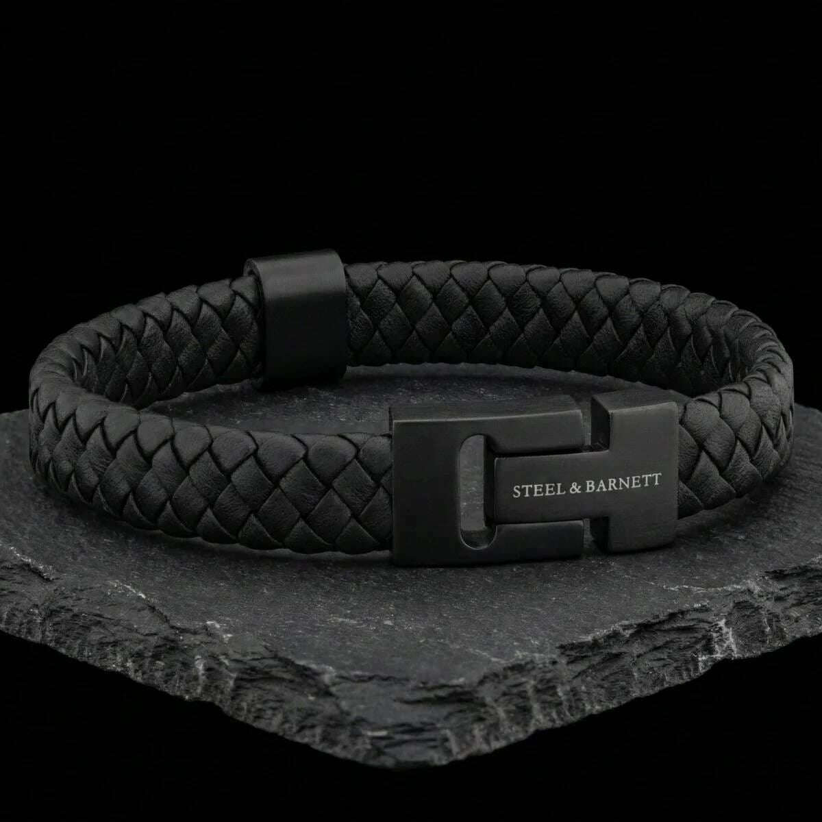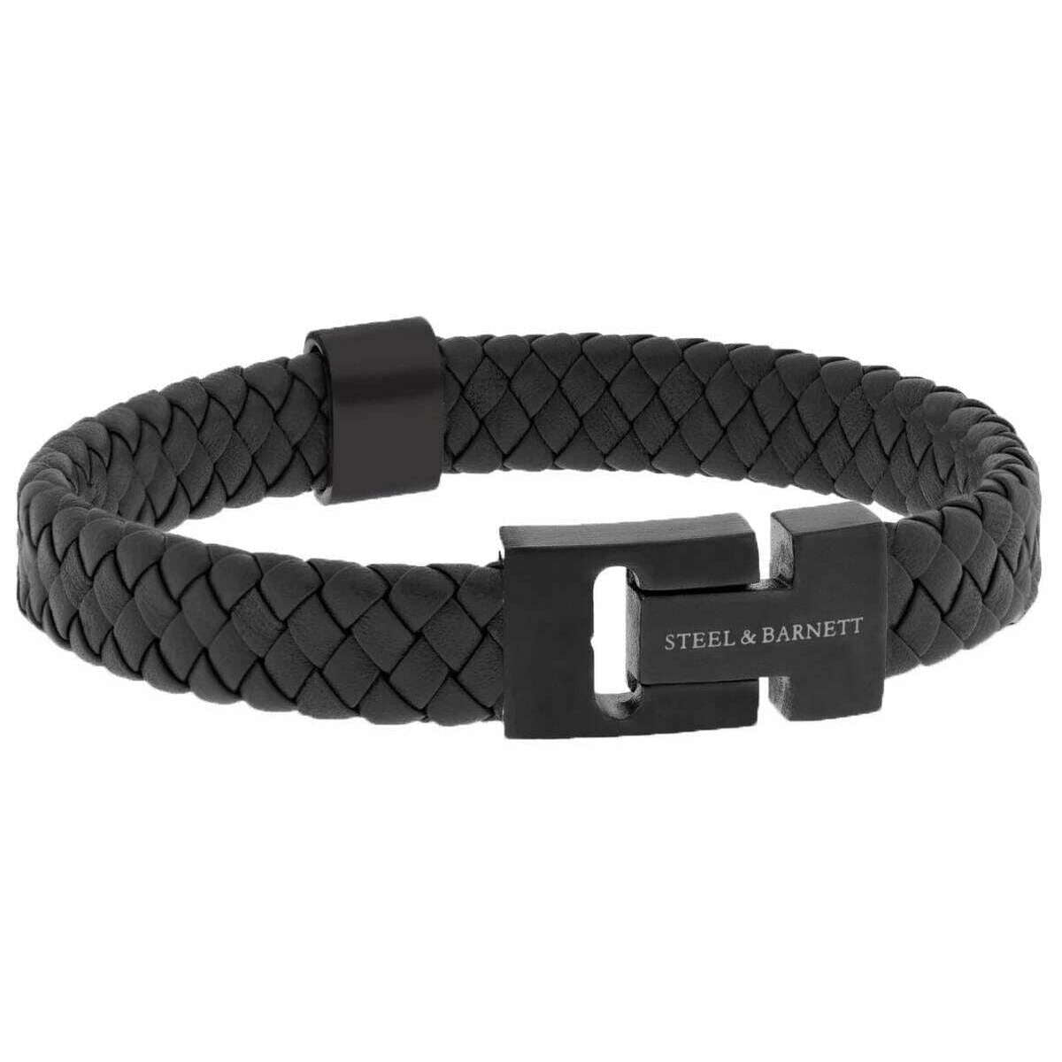 スチール & バーネット ハリソン 厚い編み込みレザー ブレスレット - ブラック エディション