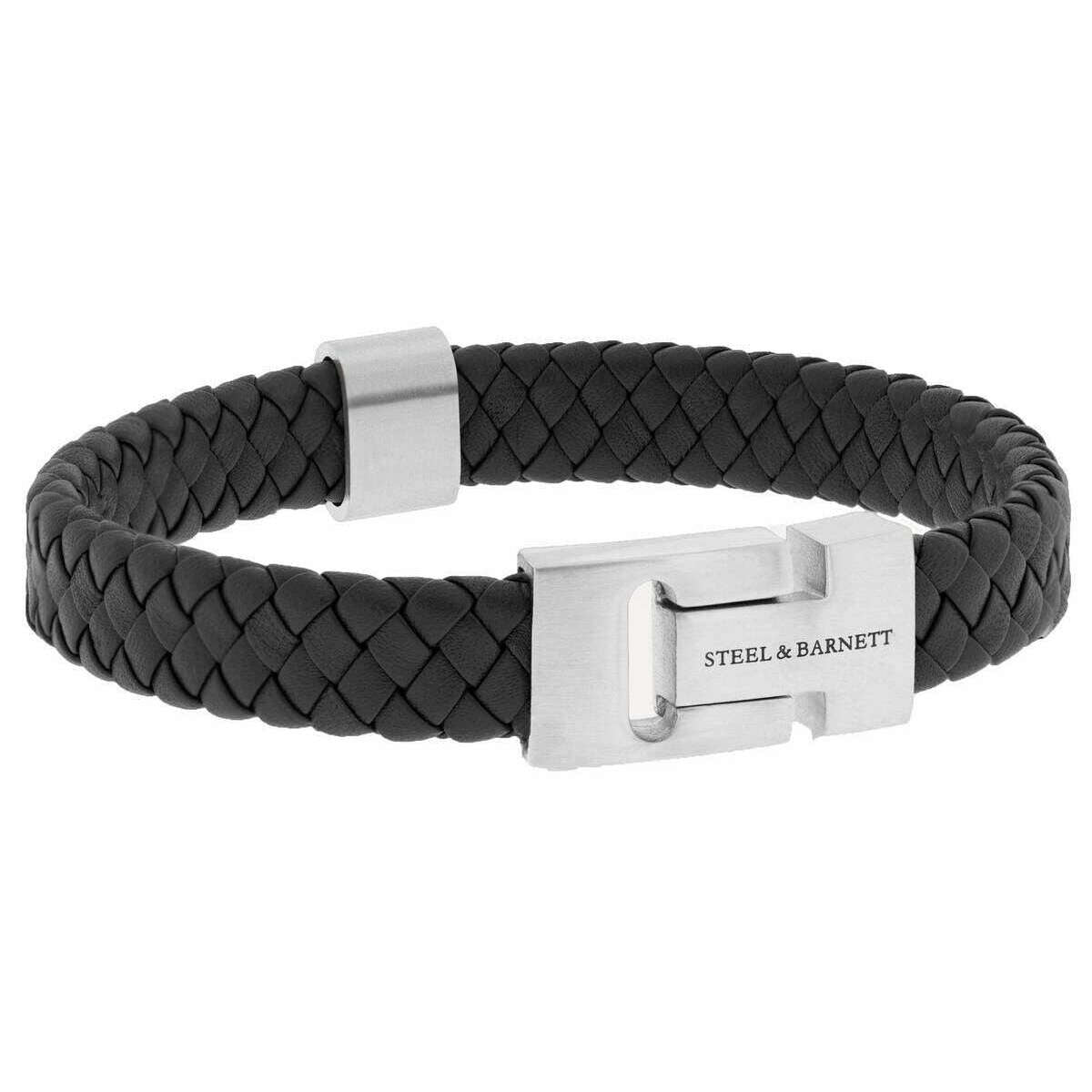 スチール & バーネット ハリソン 厚い編み込みレザー ブレスレット - ブラック/シルバー