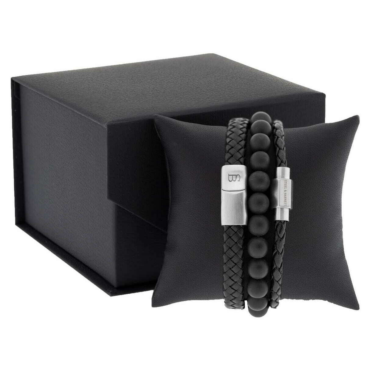 スチール & バーネット トリプル ブレスレット ギフト セット - ブラック/シルバー