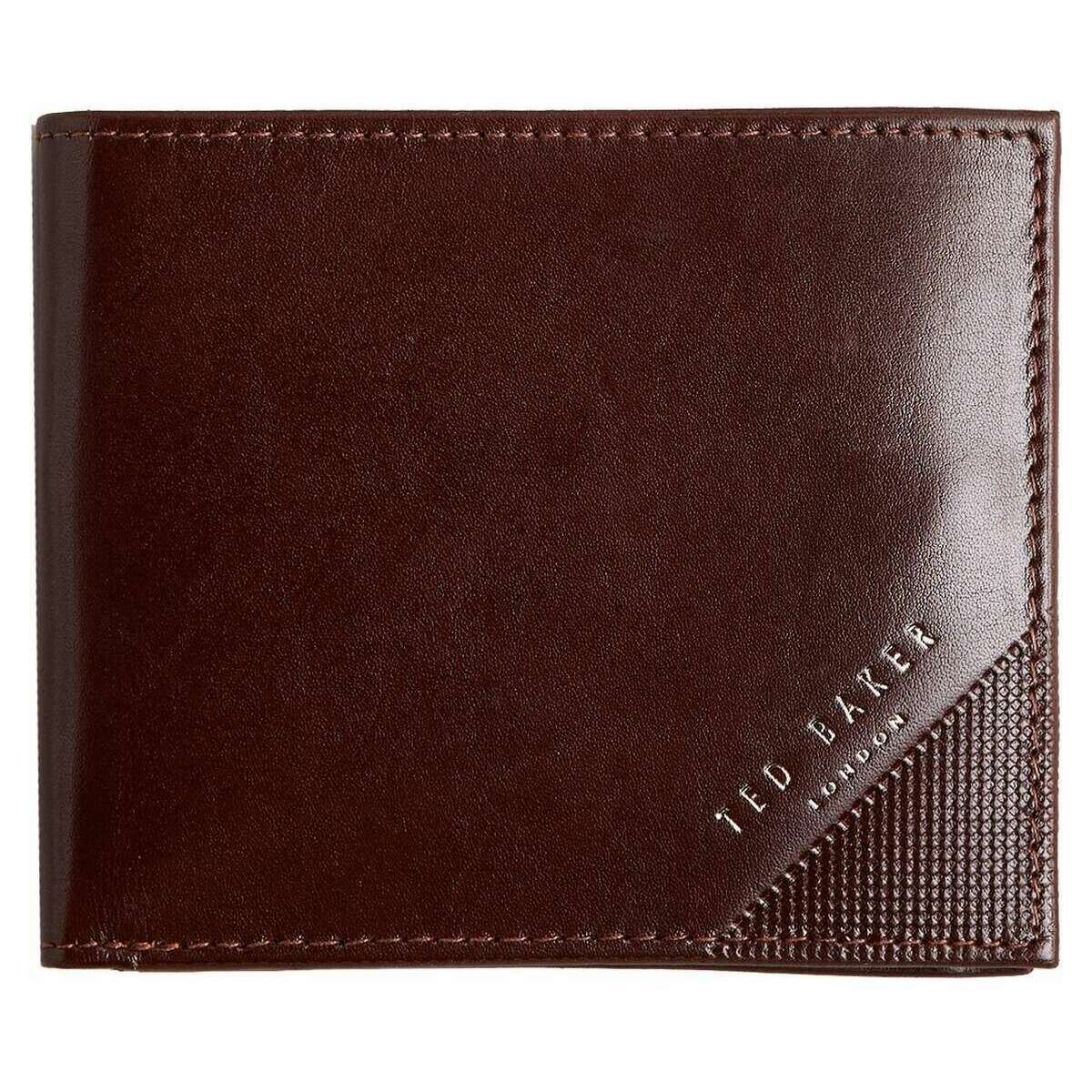 ブラウンの牛革100%を使用した、プルグスメタルコーナー二つ折り財布です。 Ted Baker 男性に最適で、必需品です。サイズは9cm(高さ)×11cm(幅)×2cm(奥行き)です。すべての財布はTED BAKERのギフトボックスに入った状態でお届けします。の Ted Baker Prugs メタル コーナー 二つ折り財布 - ブラウンは洗練されたポリッシュ レザー仕上げで、上に箔ロゴが付いたエンボス加工のテクスチャー コーナーが特徴です。開くと 4 つのカード スロット、スナップボタン付きのコイン ポケット、2 枚の紙幣用コンパートメントがあり、必需品をすべて収納できる十分な収納力を備えています。