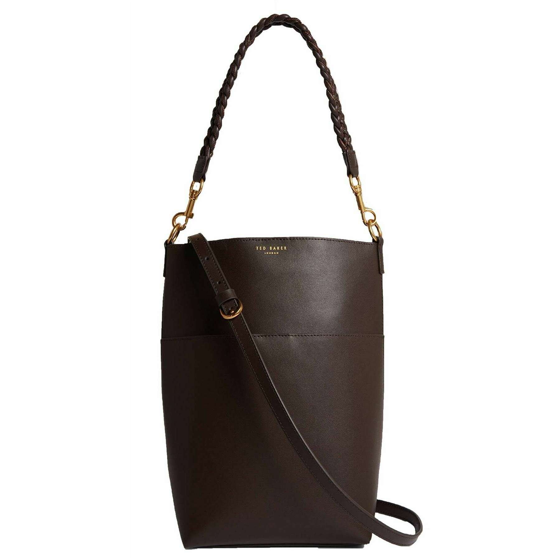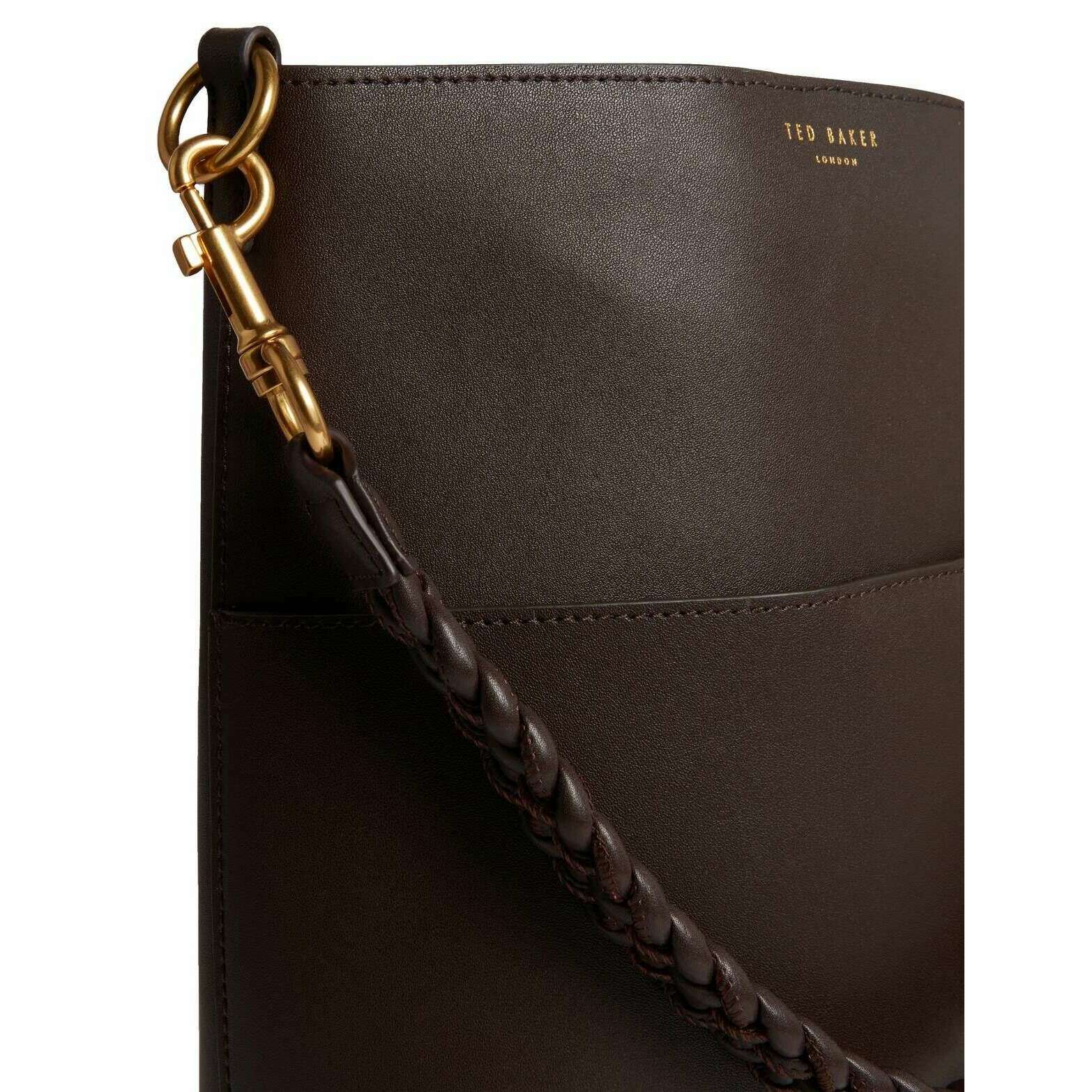 Ted Baker ワンダ編られたハンドル細長い革のバケツバッグ - チョコレートブラウン