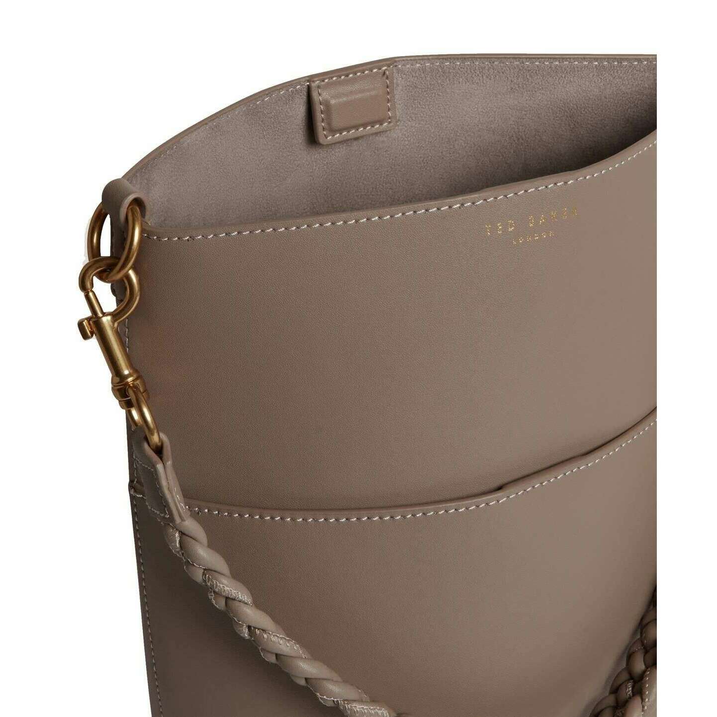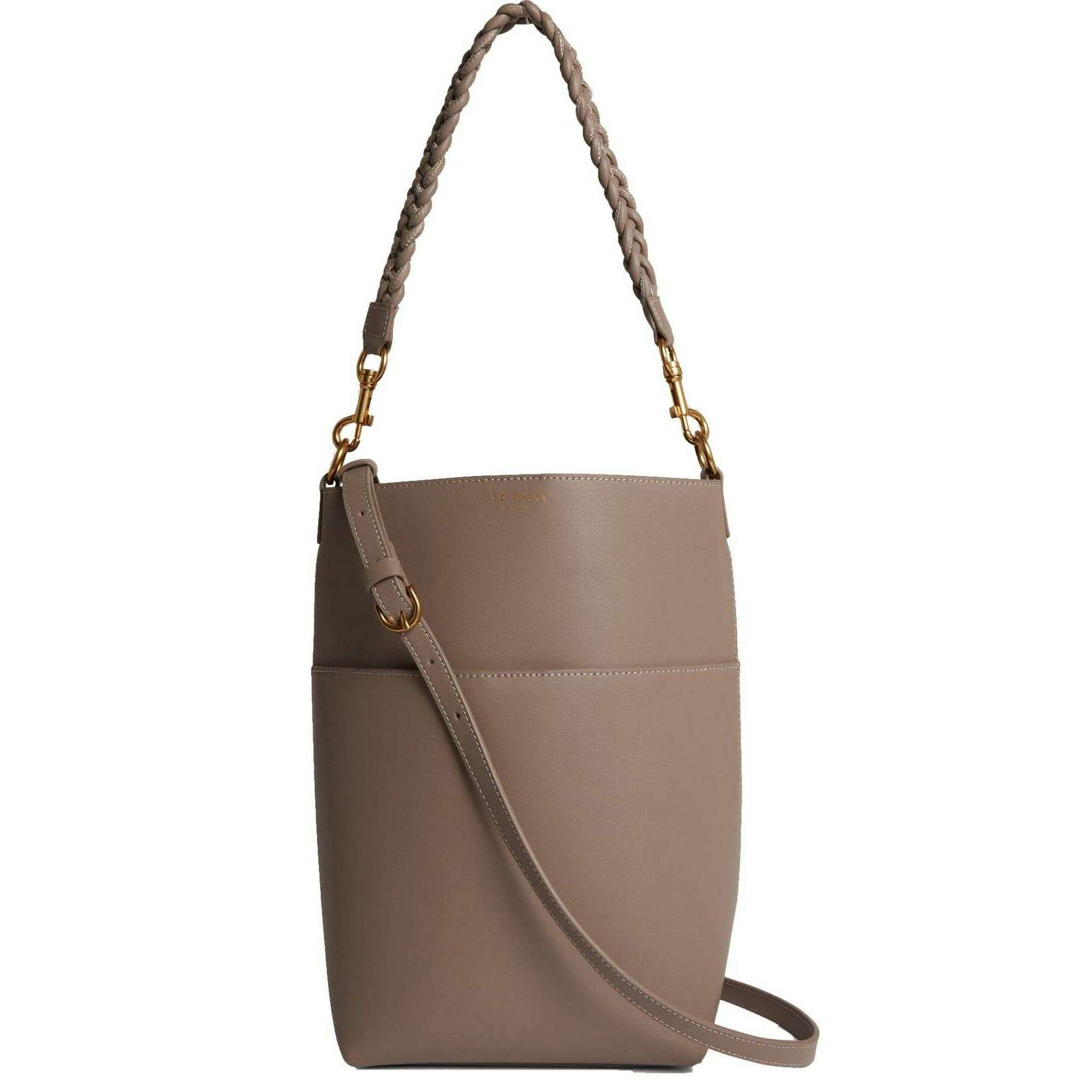Ted Baker wannda編られたハンドル細長い革のバケツバッグ-Taupe