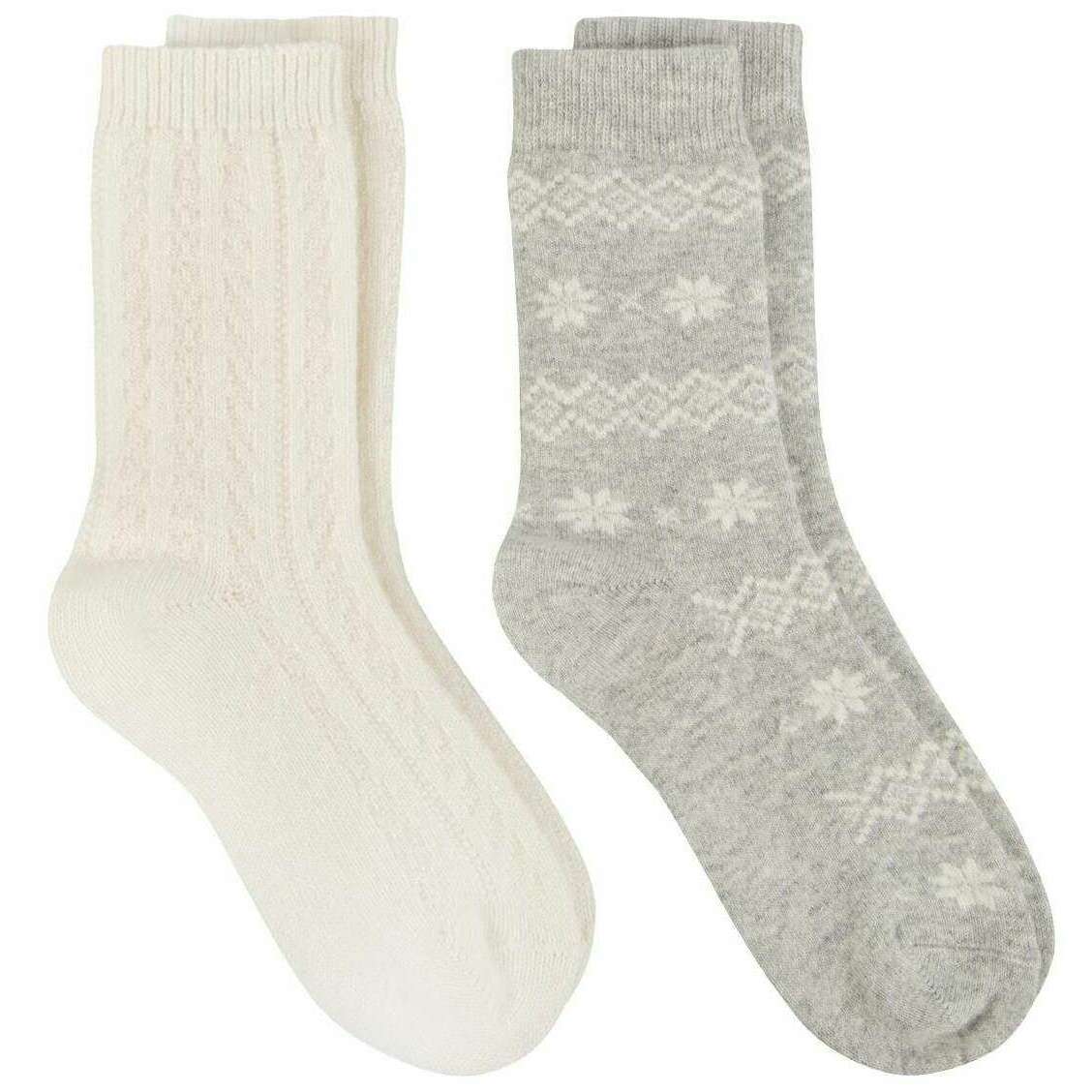 Totes Toasties カシミヤ ブレンド アンクル ソックス 2 パック - グレー/クリーム