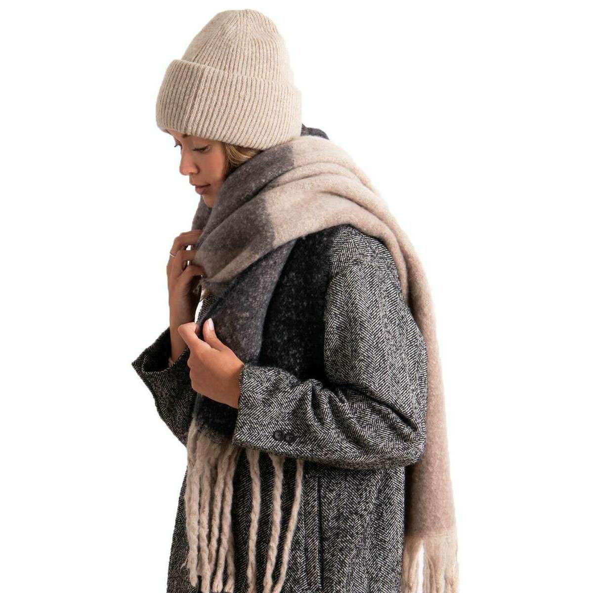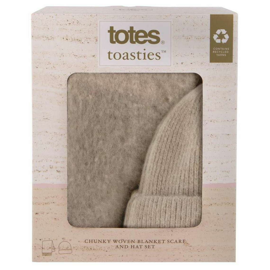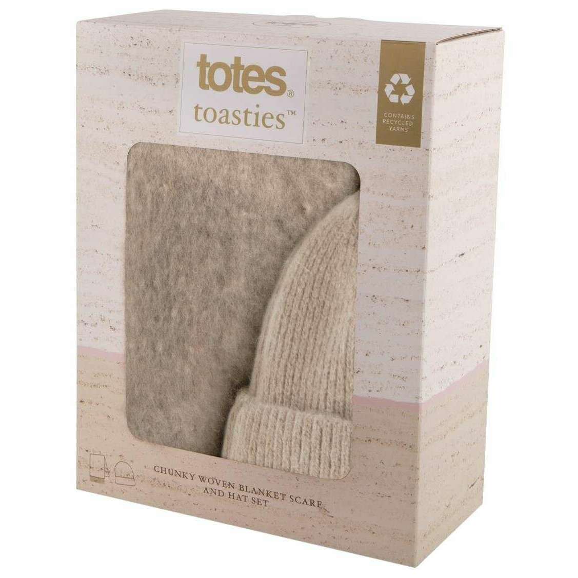 Totes Toasties チャンキー ウーブン ブランケット スカーフと帽子のセット - オーツクリーム/グレー